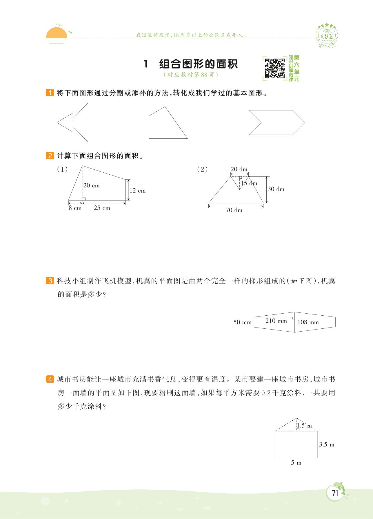 2022上册五年级数学北师版 第六单元 组合图形的面积 ——1 组合图形的面积