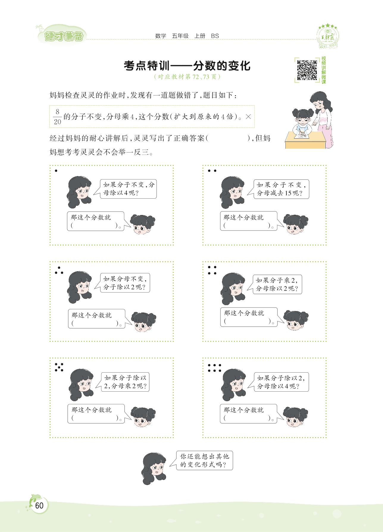 2022上册五年级数学北师版 第五单元 分数的意义——考点特训 分数的变化