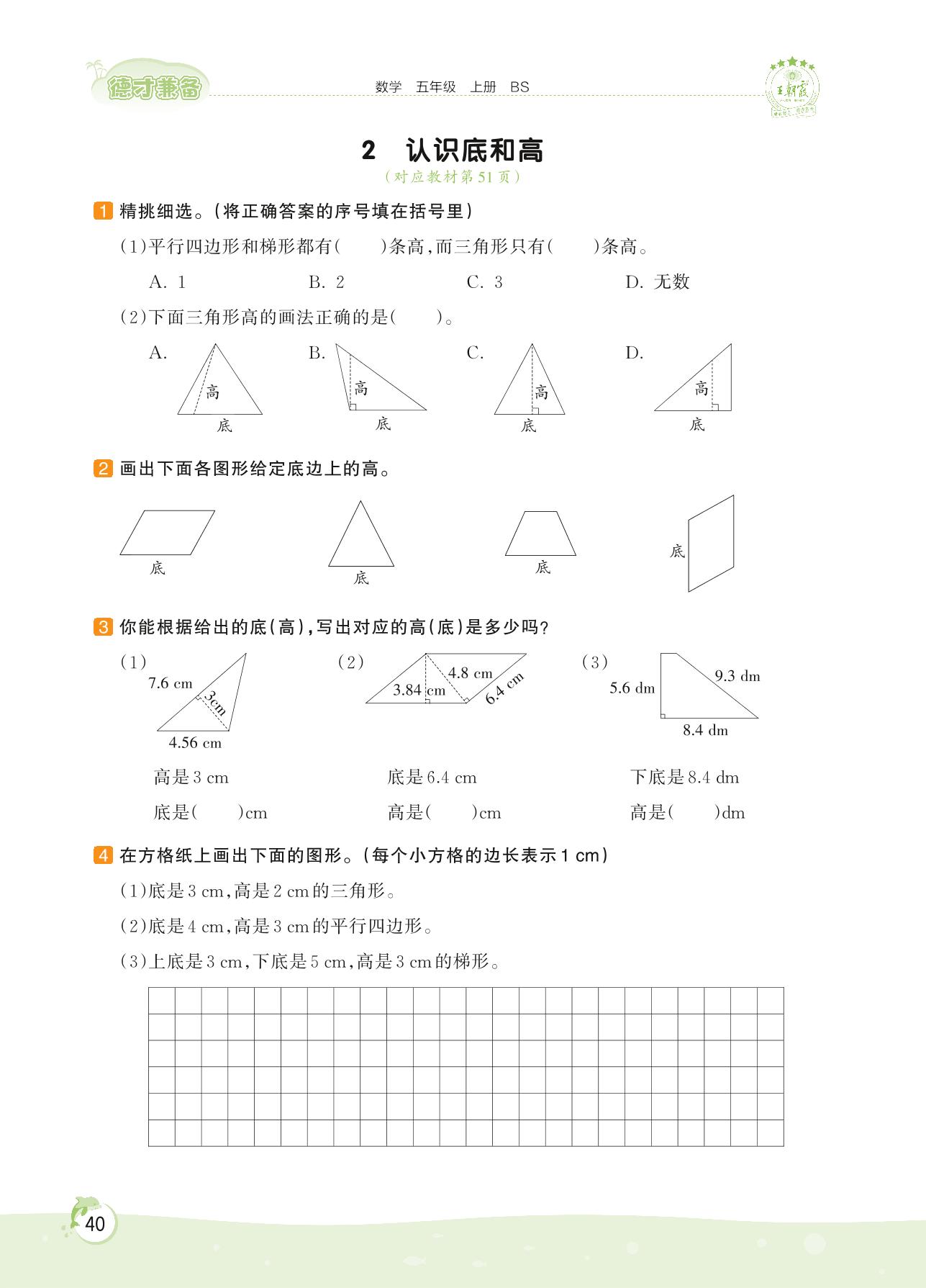 2022上册五年级数学北师版 第四单元 多边形的面积 ——2 认识底和高