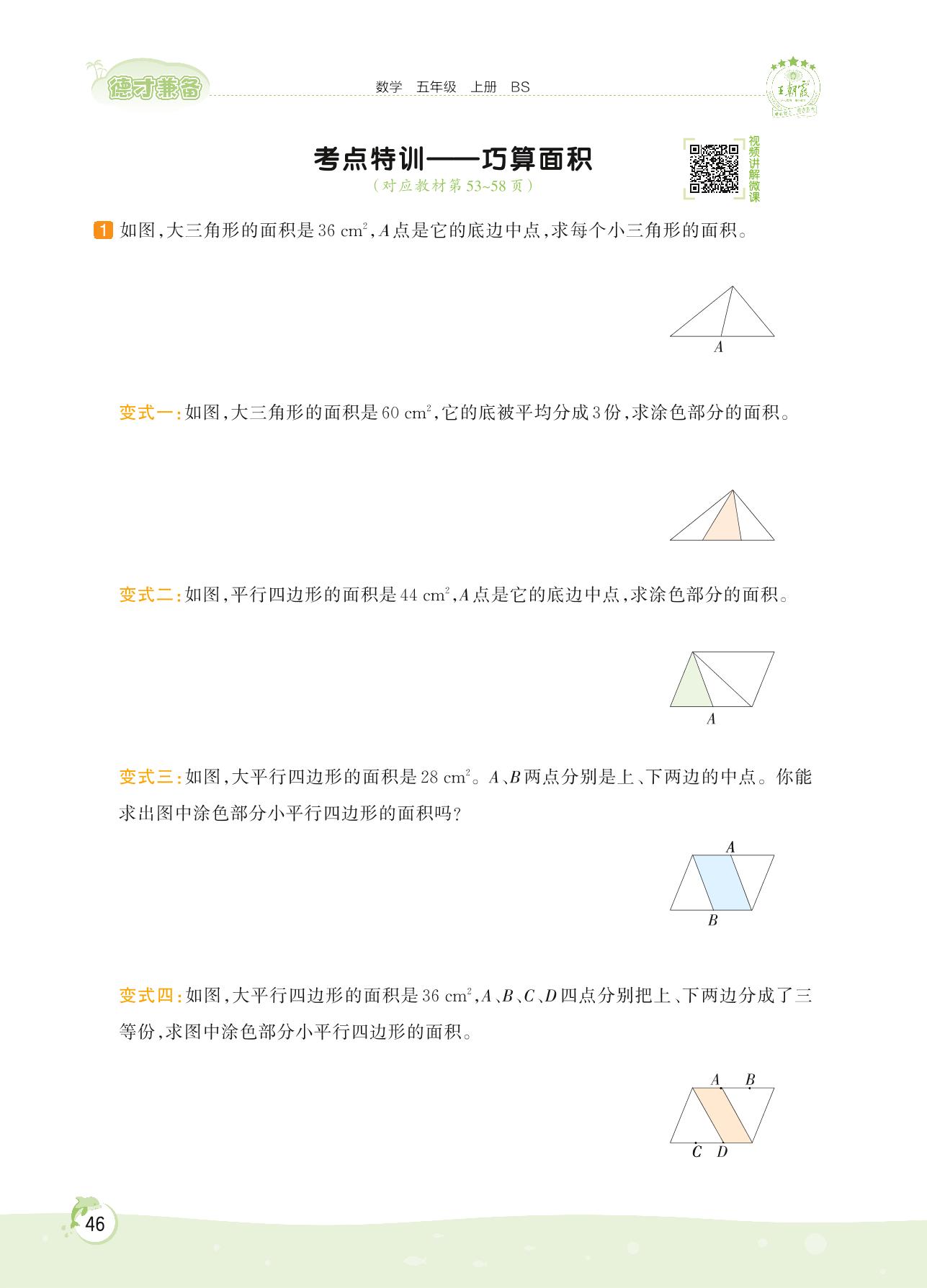 2022上册五年级数学北师版 第四单元 多边形的面积 ——考点特训 巧算面积