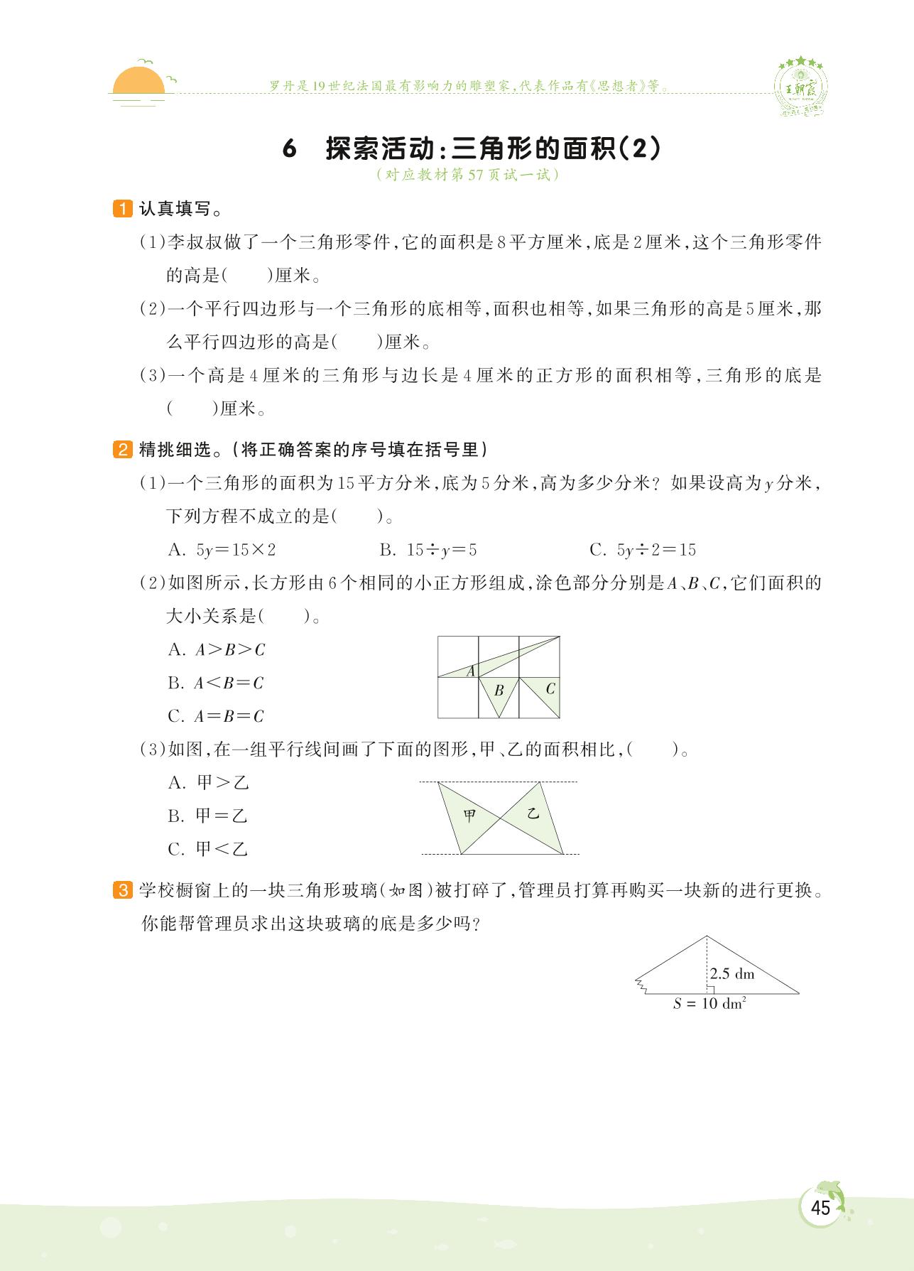 2022上册五年级数学北师版 第四单元 多边形的面积 ——6 探索活动:三角形的面积(2)