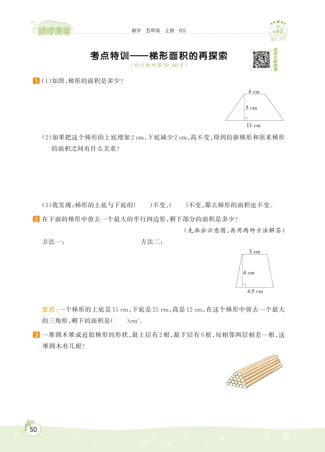 2022上册五年级数学北师版 第四单元 多边形的面积 ——考点特训 梯形面积的再探索