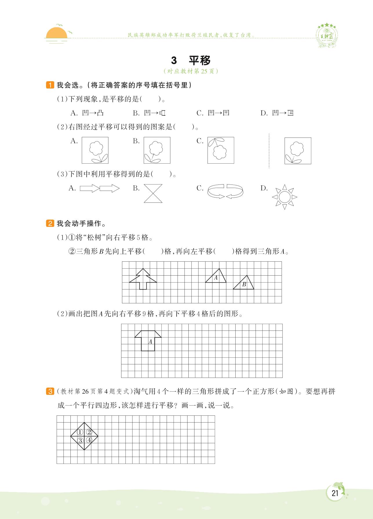 2022上册五年级数学北师版 第二单元 轴对称和平移——3 平移