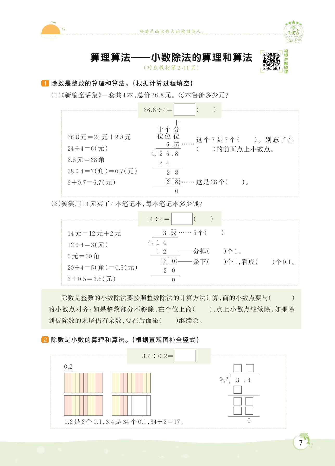 2022上册五年级数学北师版 第一单元 小数除法——算理算法 小数除法的算理和算法