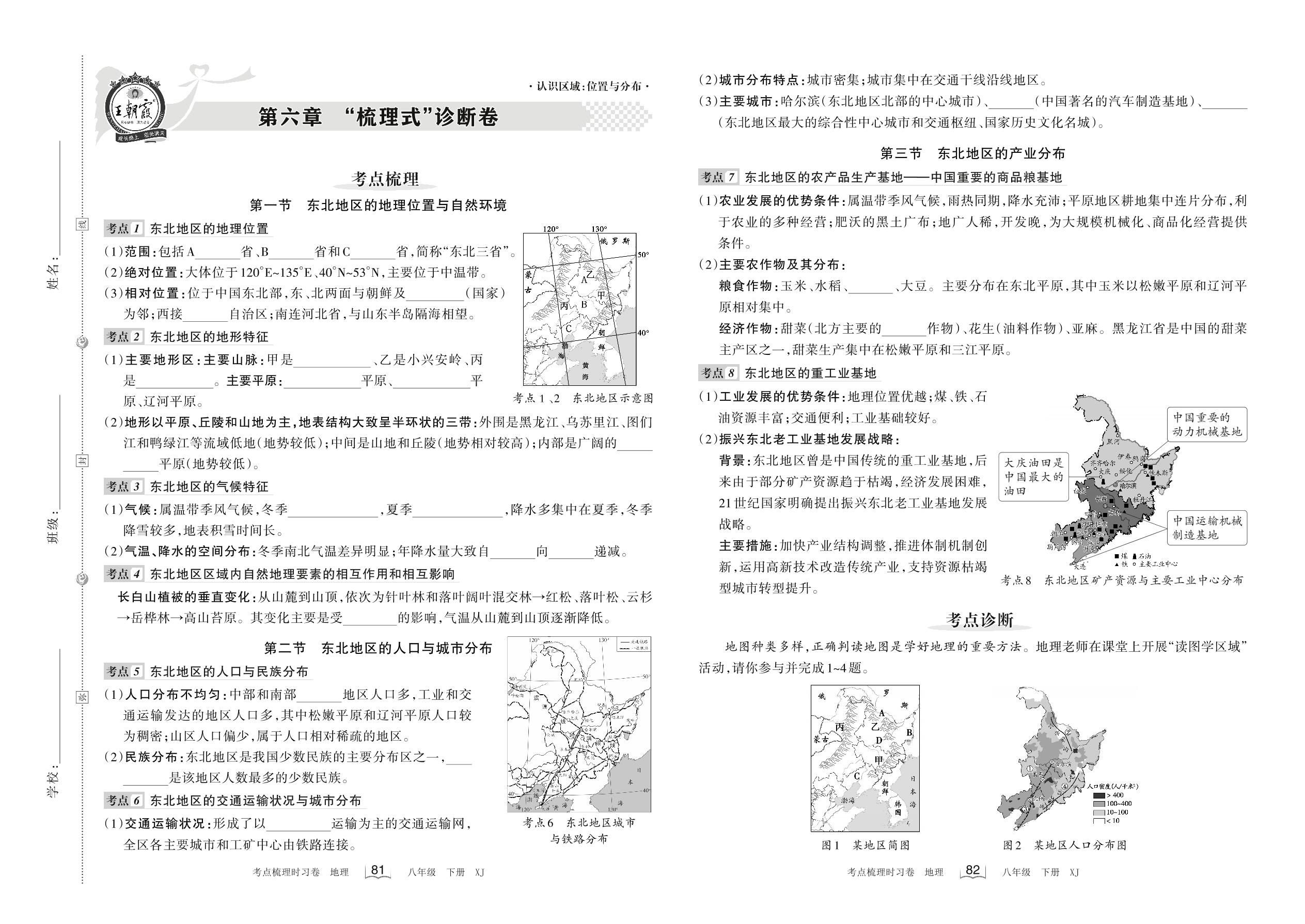 2023下册八年级地理湘教版 第六章 “梳理式”诊断卷