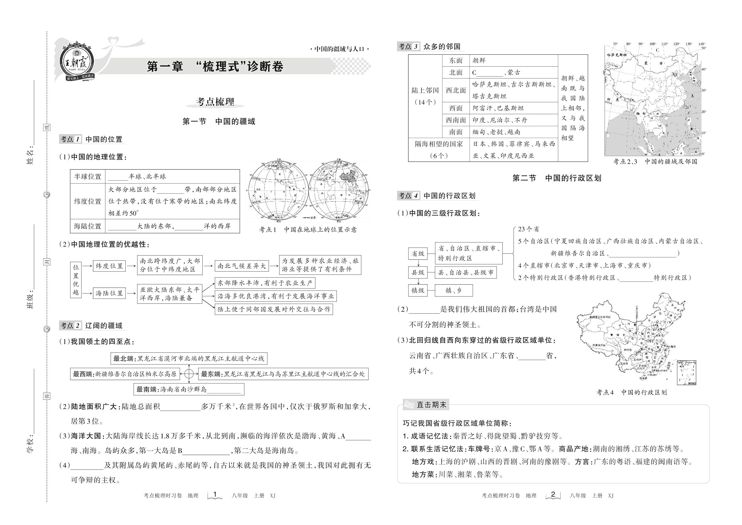 2022上册八年级地理湘教版 第一章 “梳理式”诊断卷