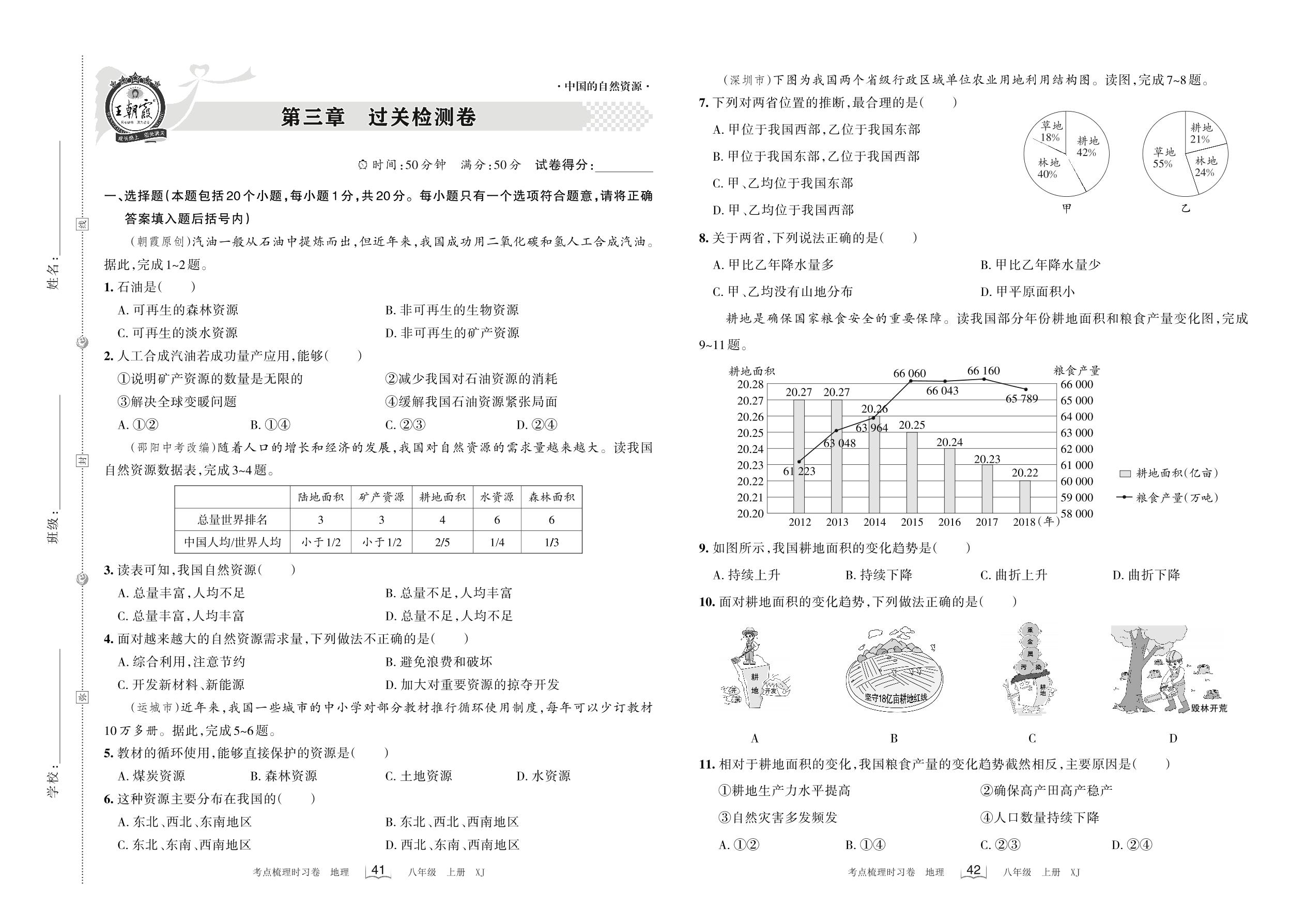 2022上册八年级地理湘教版 第三章 过关检测卷
