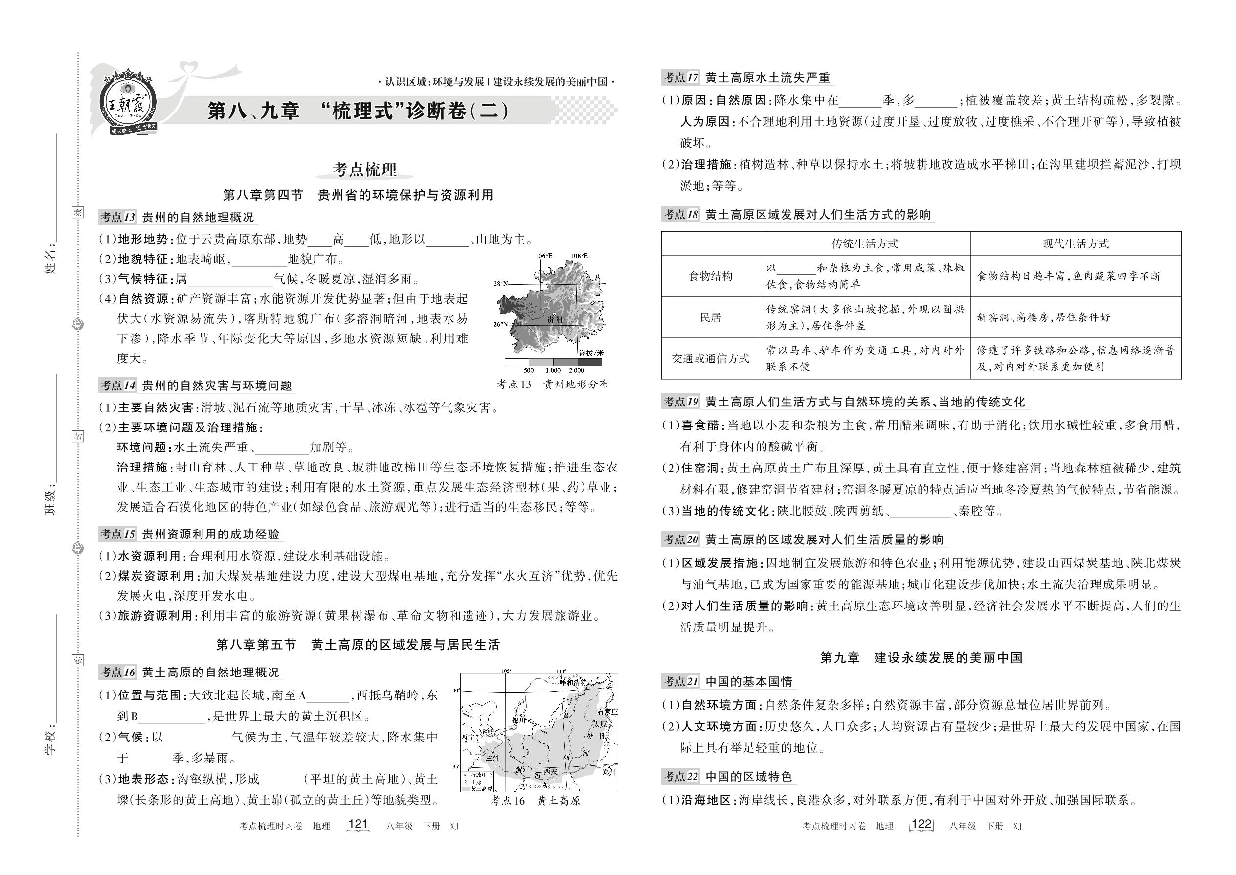 2023下册八年级地理湘教版 第八、九章 “梳理式”诊断卷(二)