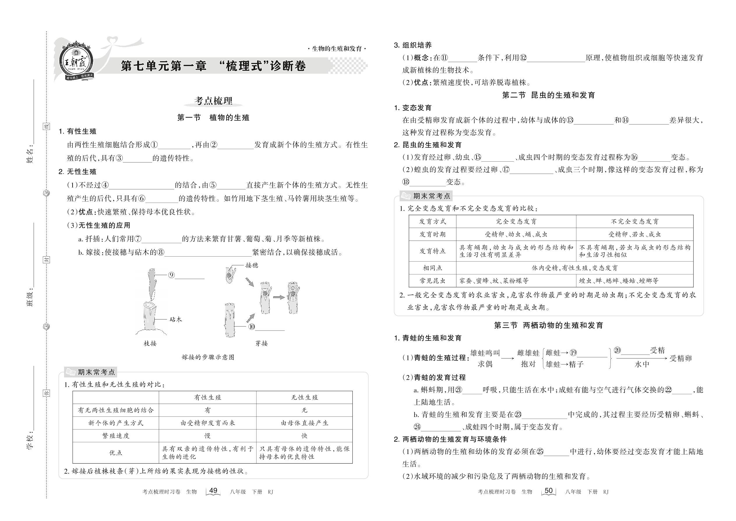2023下册八年级生物人教版 第七单元第一章 “梳理式”诊断卷