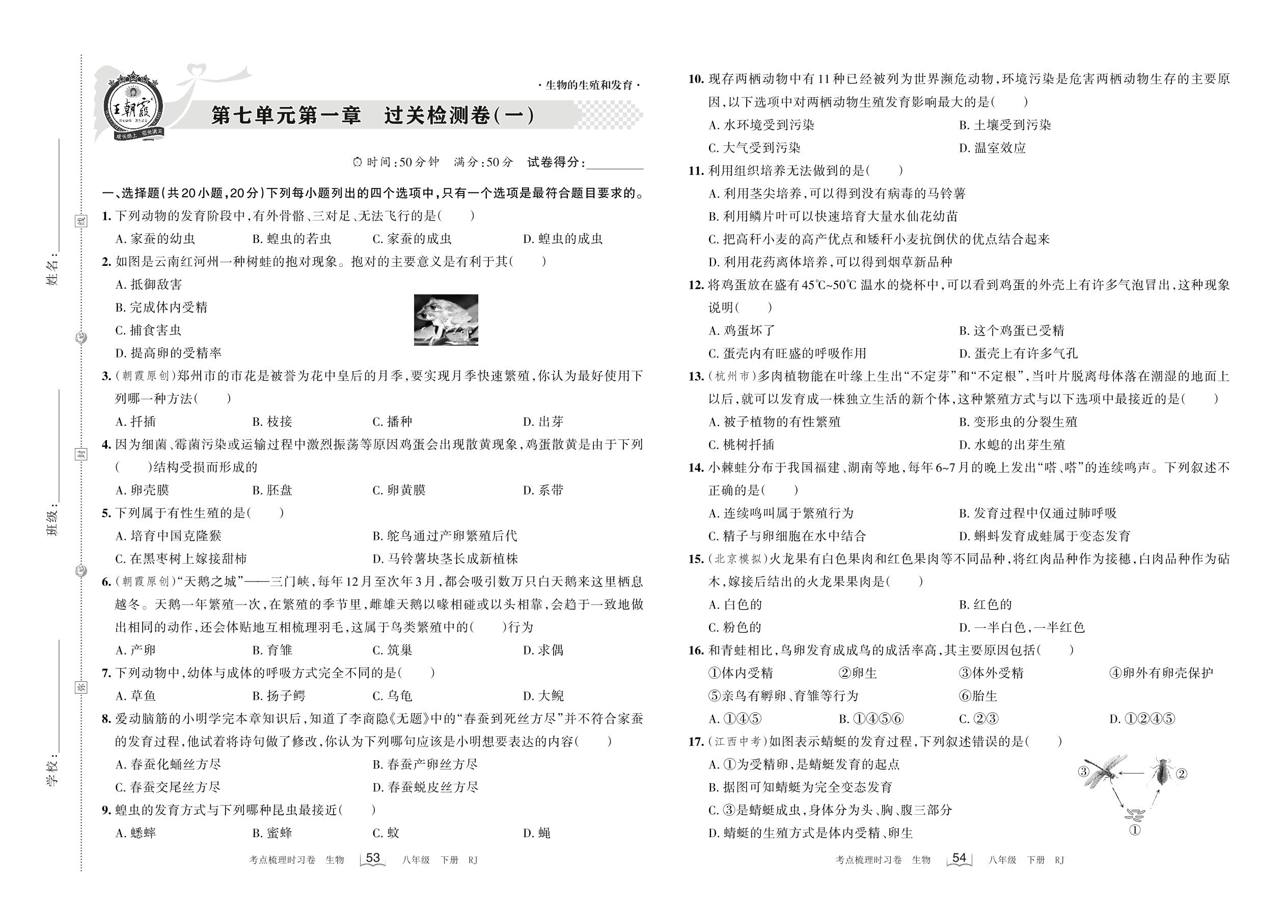 2023下册八年级生物人教版 第七单元第一章 过关检测卷(一)