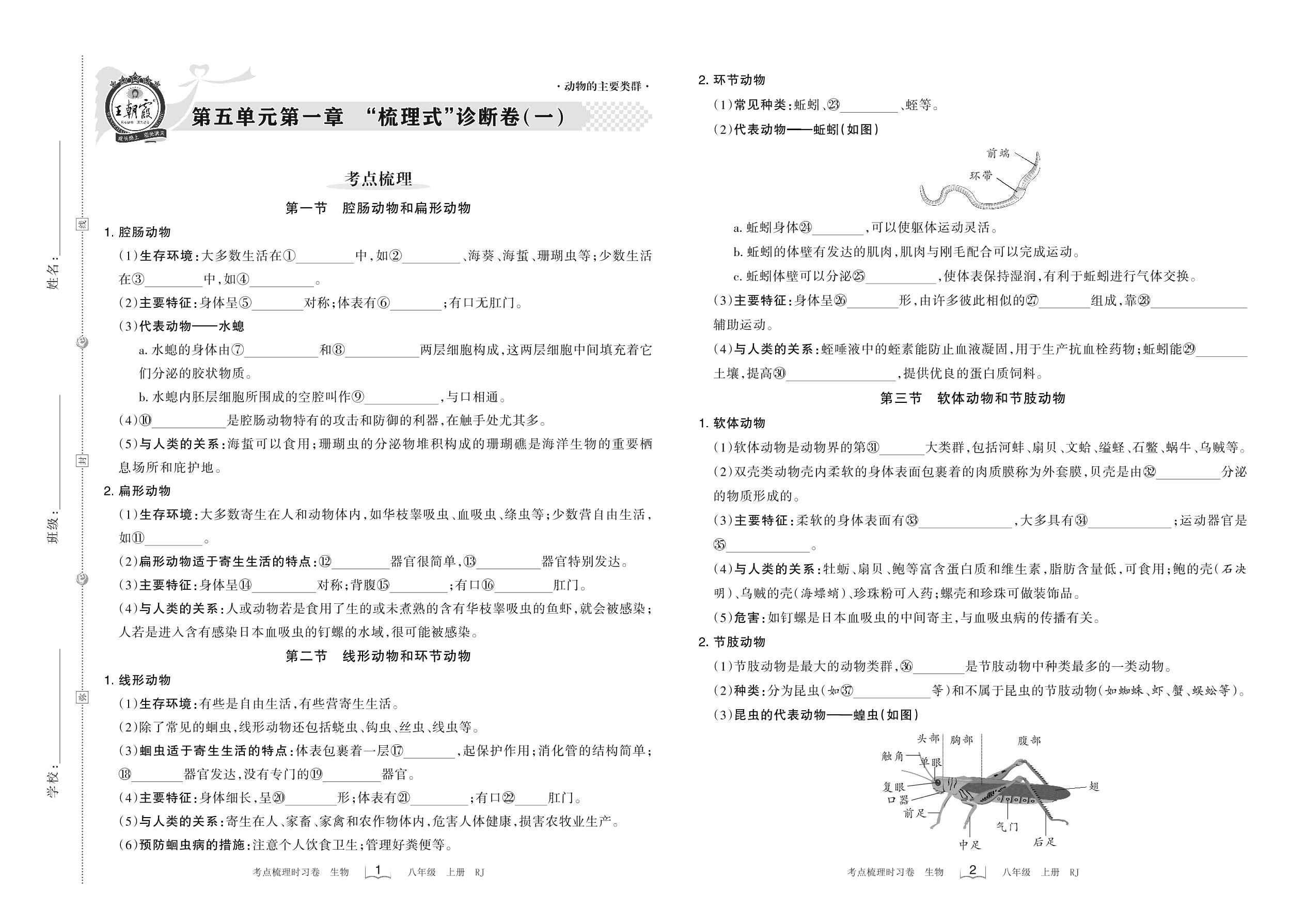 2022上册八年级生物人教版 第五单元第一章 “梳理式”诊断卷(一)