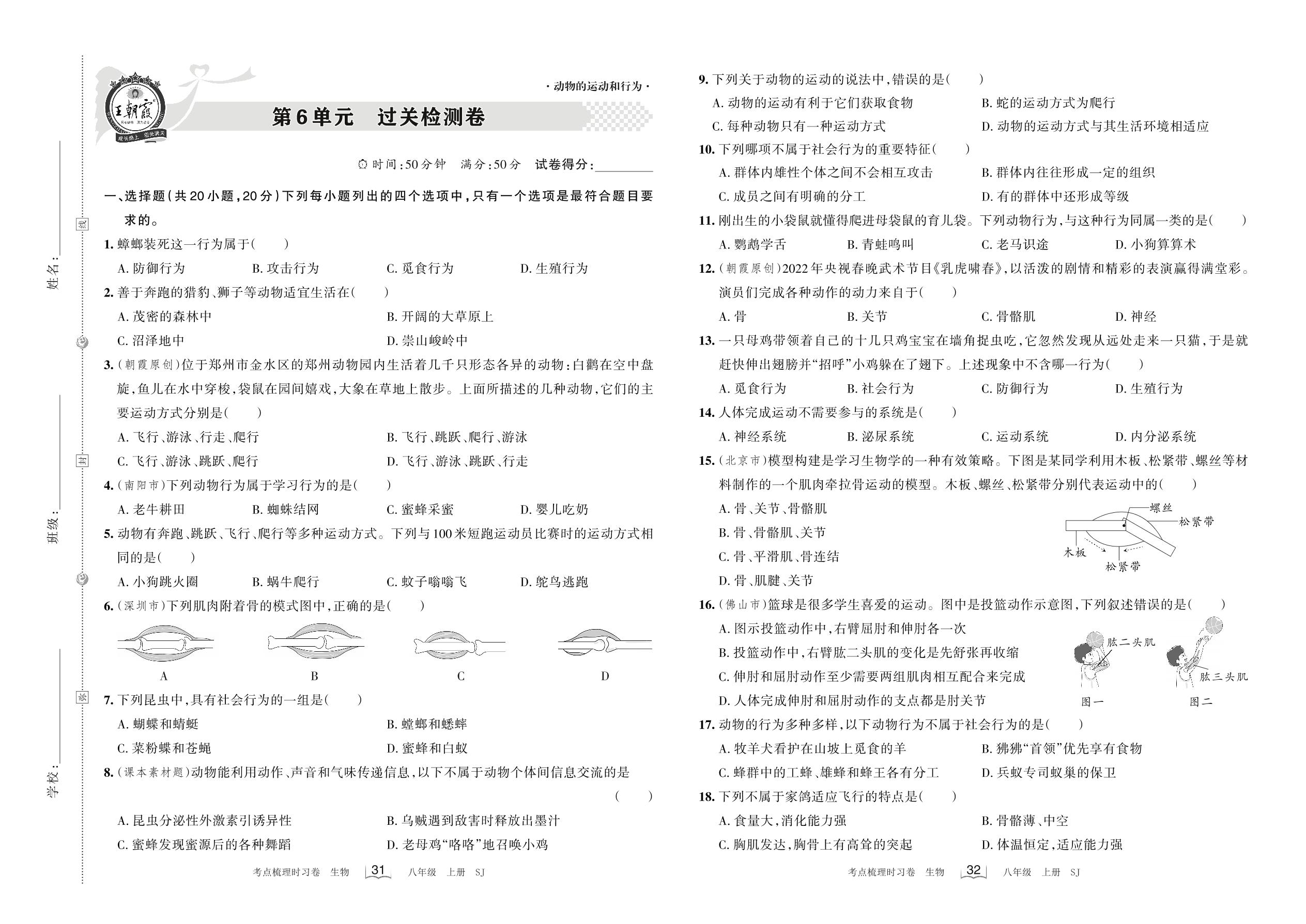2022上册八年级生物苏教版 第6单元 过关检测卷