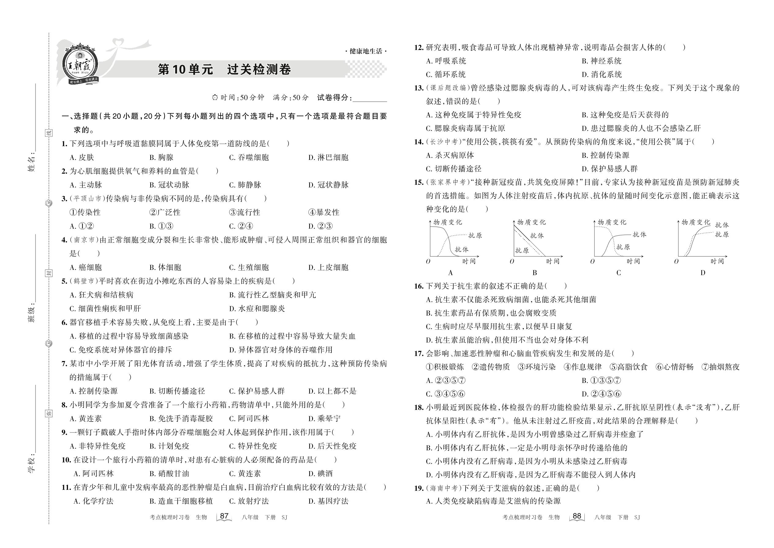2023下册八年级生物苏教版 第10单元 过关检测卷