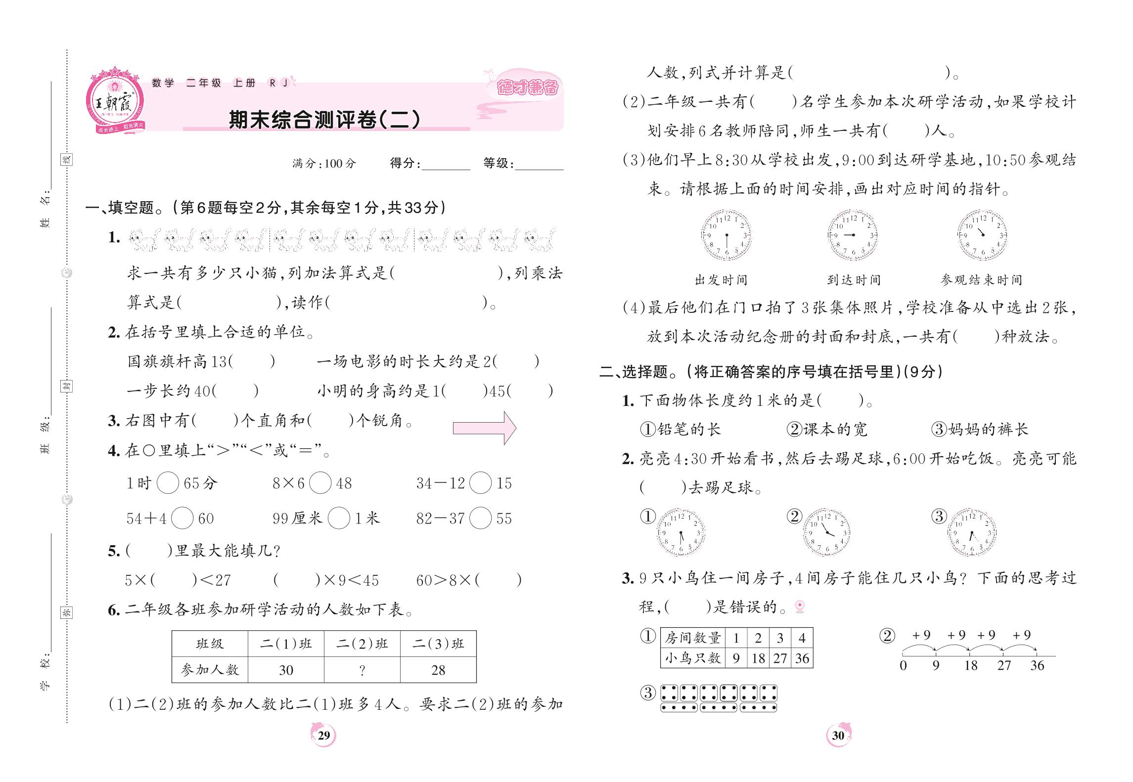 2022上册二年级数学人教版 期末综合测评卷(二)