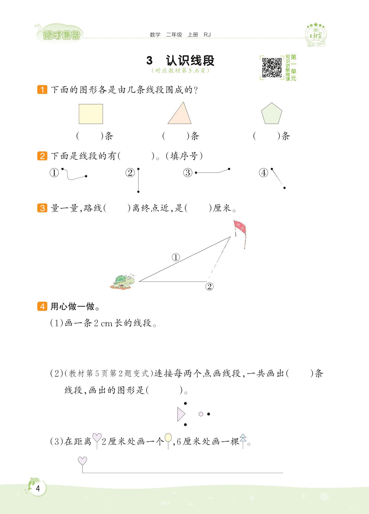 2022上册二年级数学人教版 第一单元 长度单位——3 认识线段