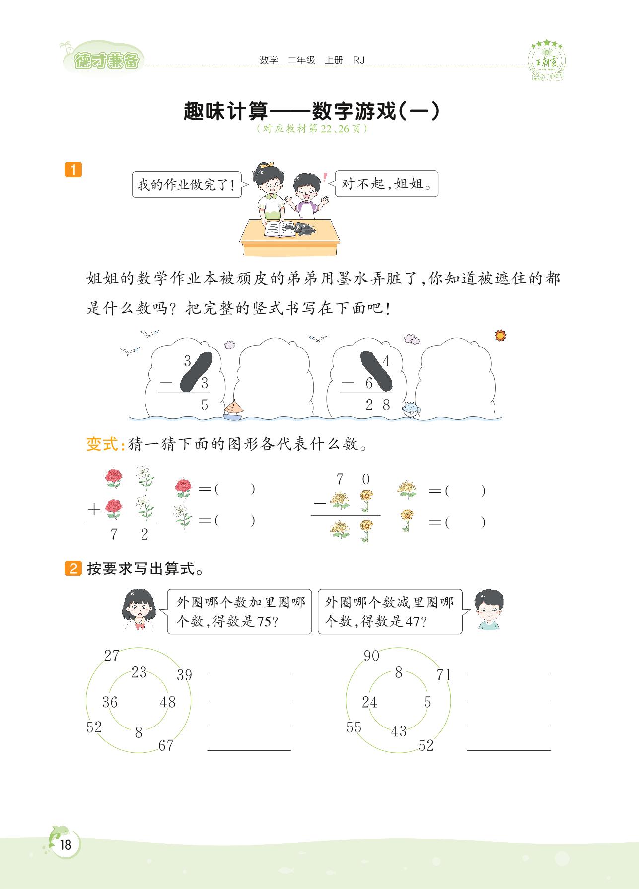 2022上册二年级数学人教版 第二单元 100以内的加法和减法(二)——趣味计算 数字游戏(一)