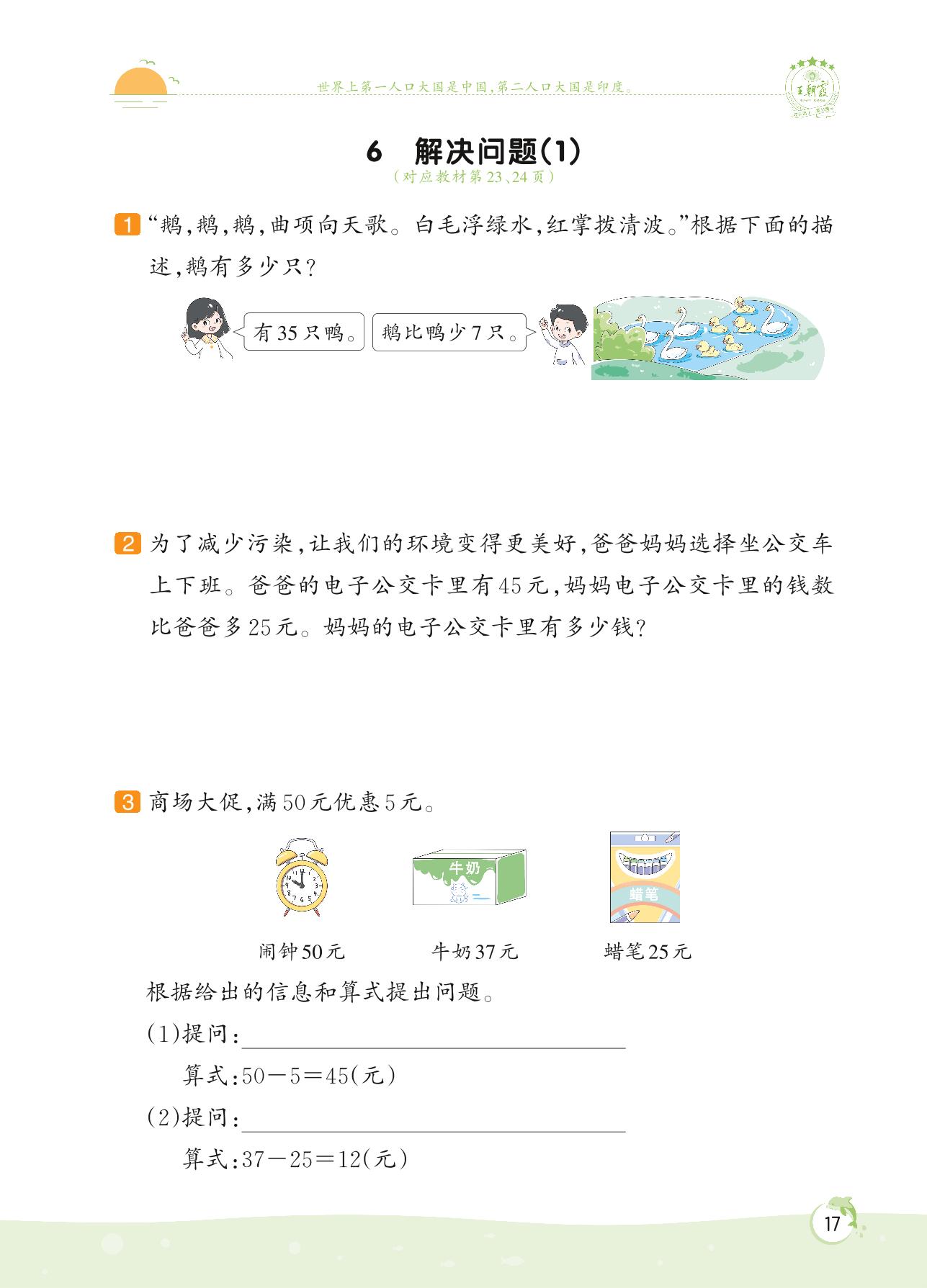 2022上册二年级数学人教版 第二单元 100以内的加法和减法(二)——6 解决问题(1)