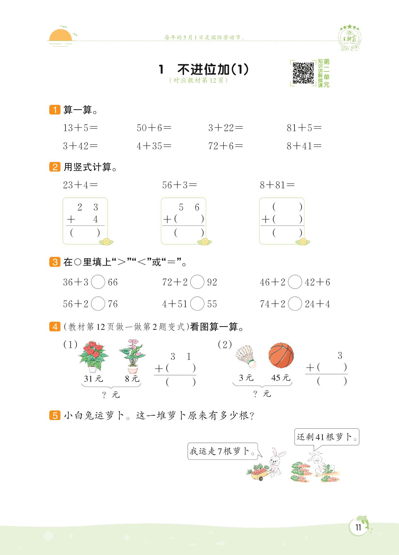 2022上册二年级数学人教版 第二单元 100以内的加法和减法(二)——1 不进位加(1)