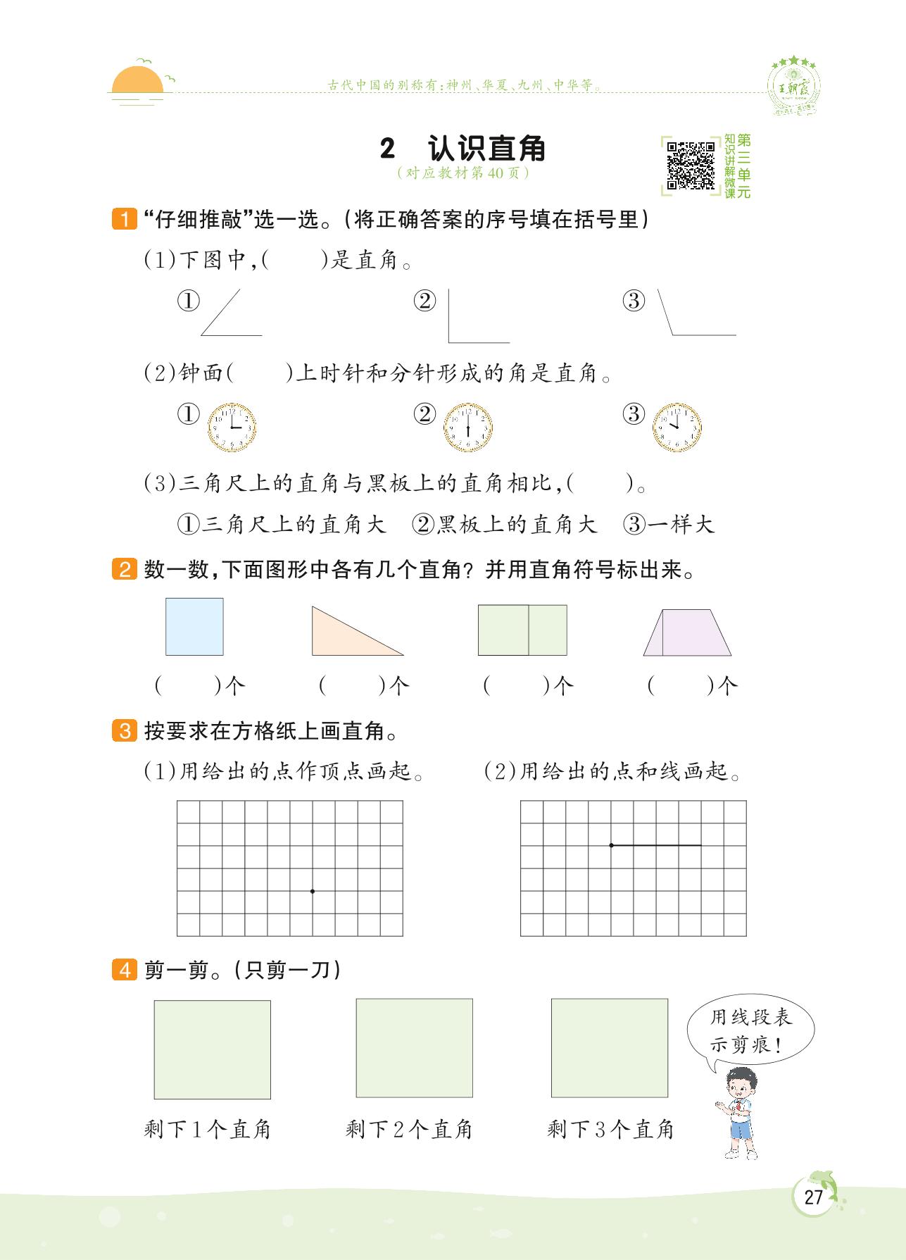 2022上册二年级数学人教版 第三单元 角的初步认识——2 认识直角