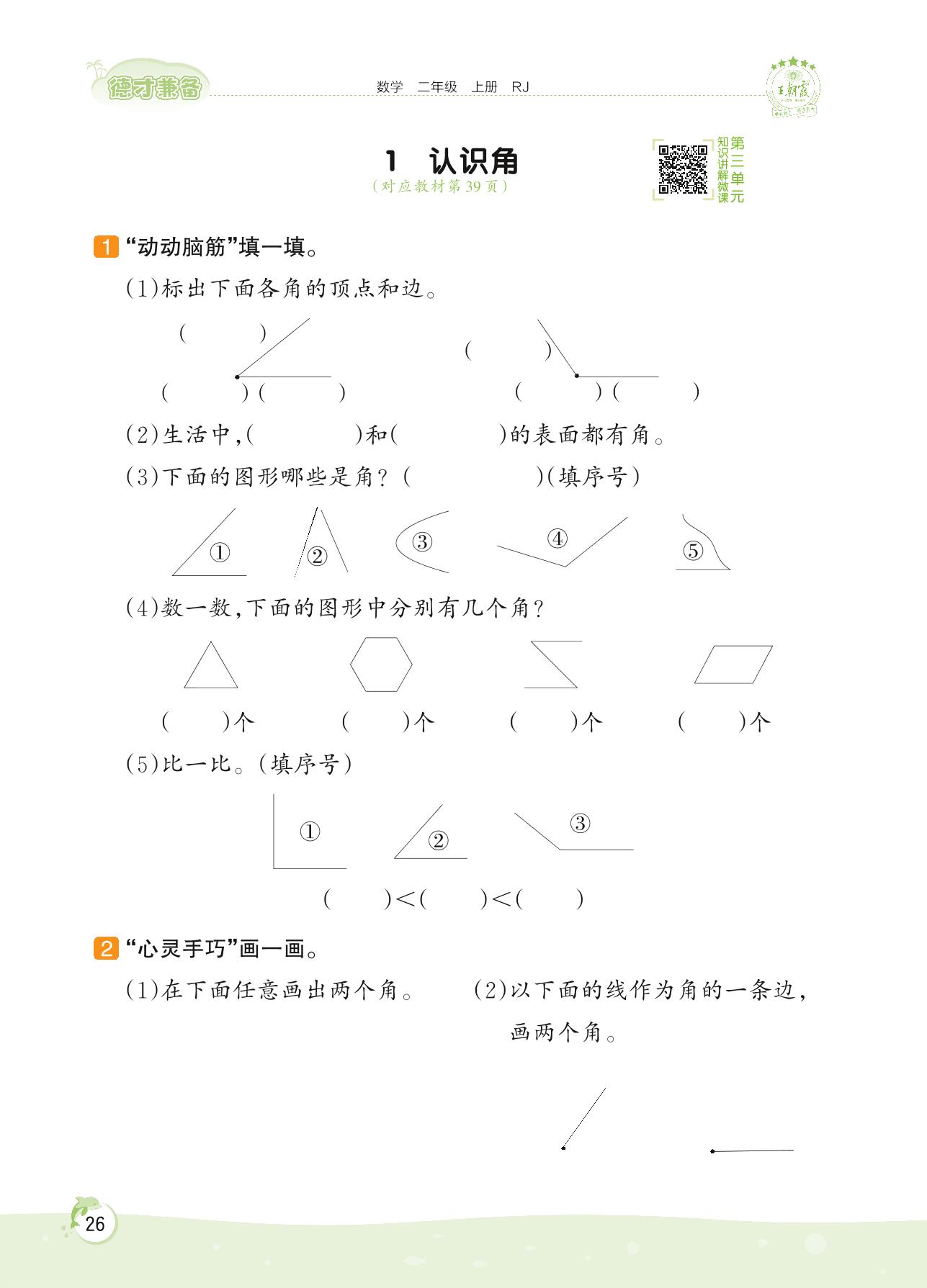 2022上册二年级数学人教版 第三单元 角的初步认识——1 认识角