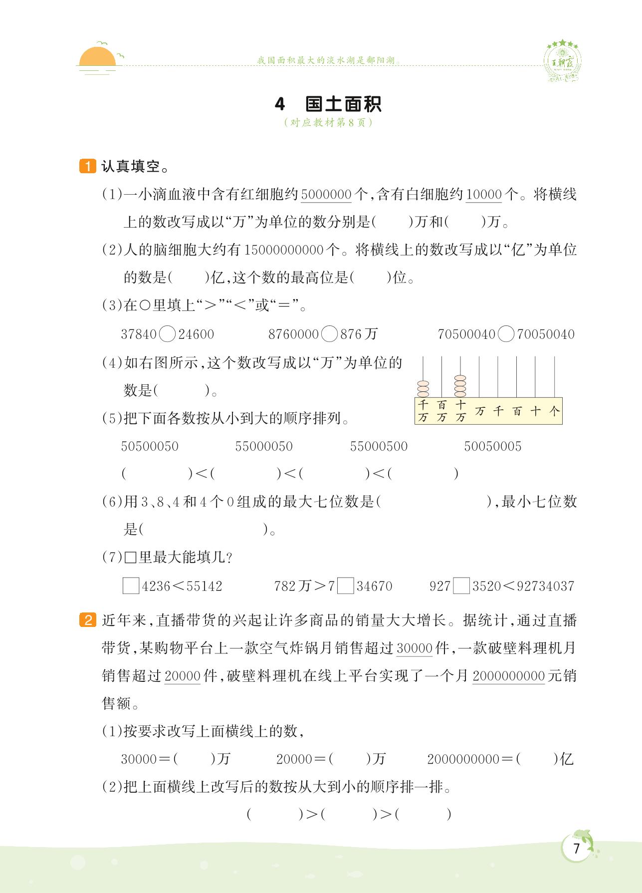 2022上册四年级数学北师版 第一单元 认识更大的数——4 国土面积