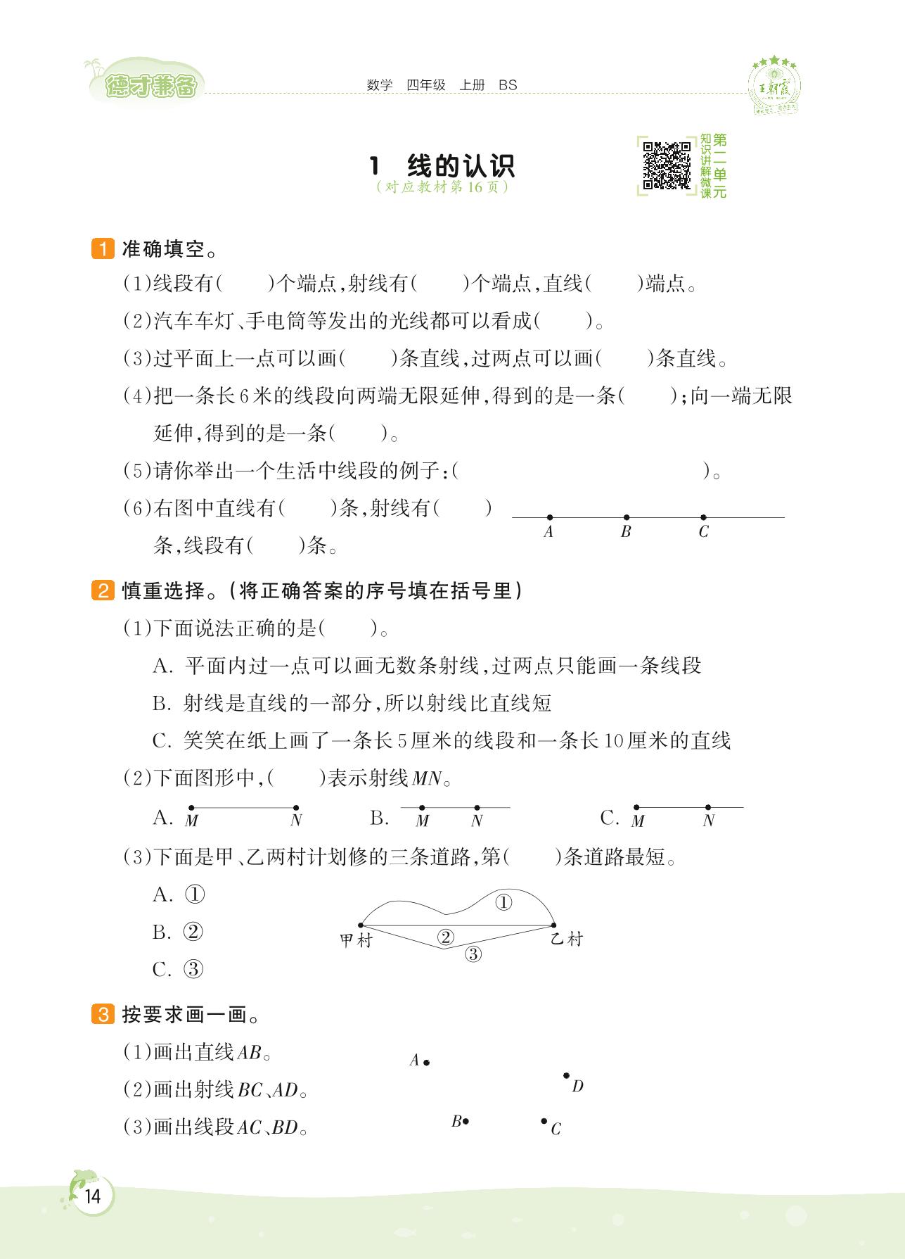 2022上册四年级数学北师版 第二单元 线与角——1 线的认识