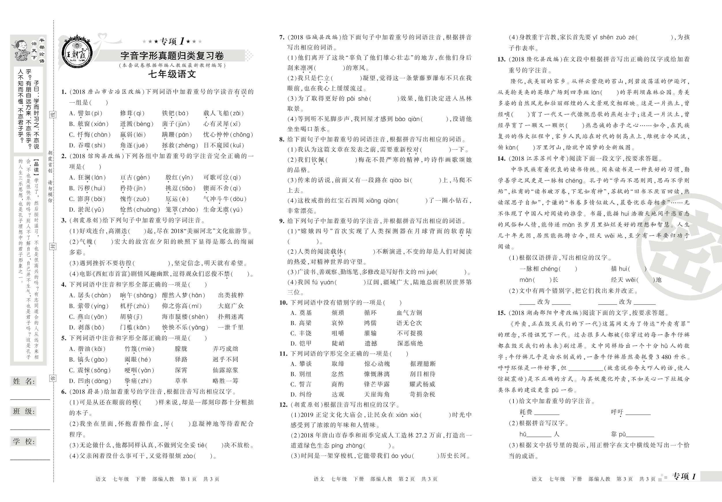 王朝霞期末专项卷——字音字形、词语理解与运用真题归类复习卷七年级下册语文(人教版)_R21080240149【0】