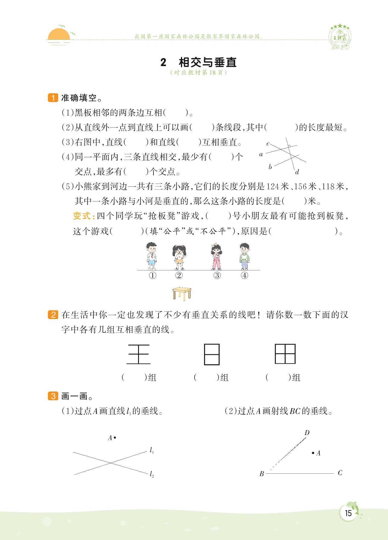 2022上册四年级数学北师版 第二单元 线与角——2 相交与垂直