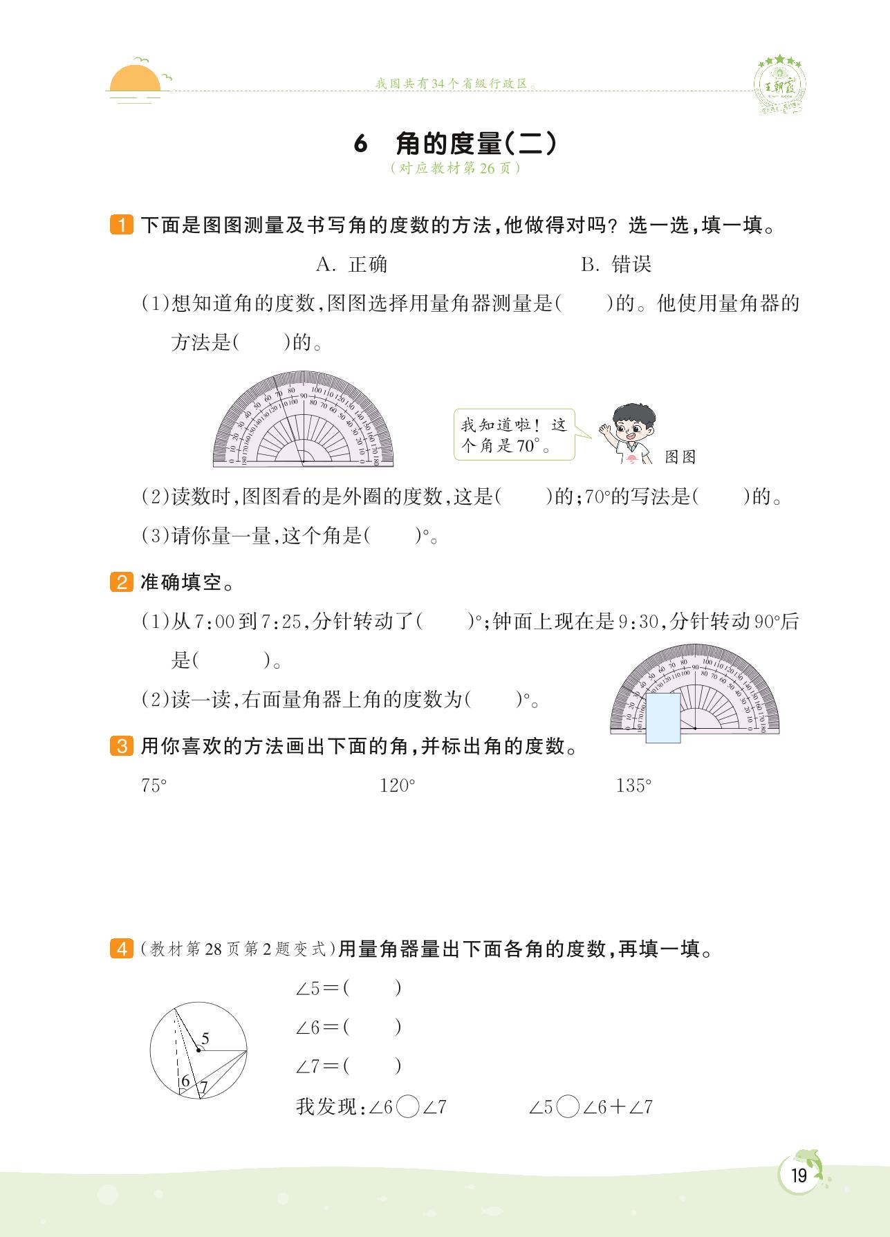 2022上册四年级数学北师版 第二单元 线与角——6 角的度量(二)