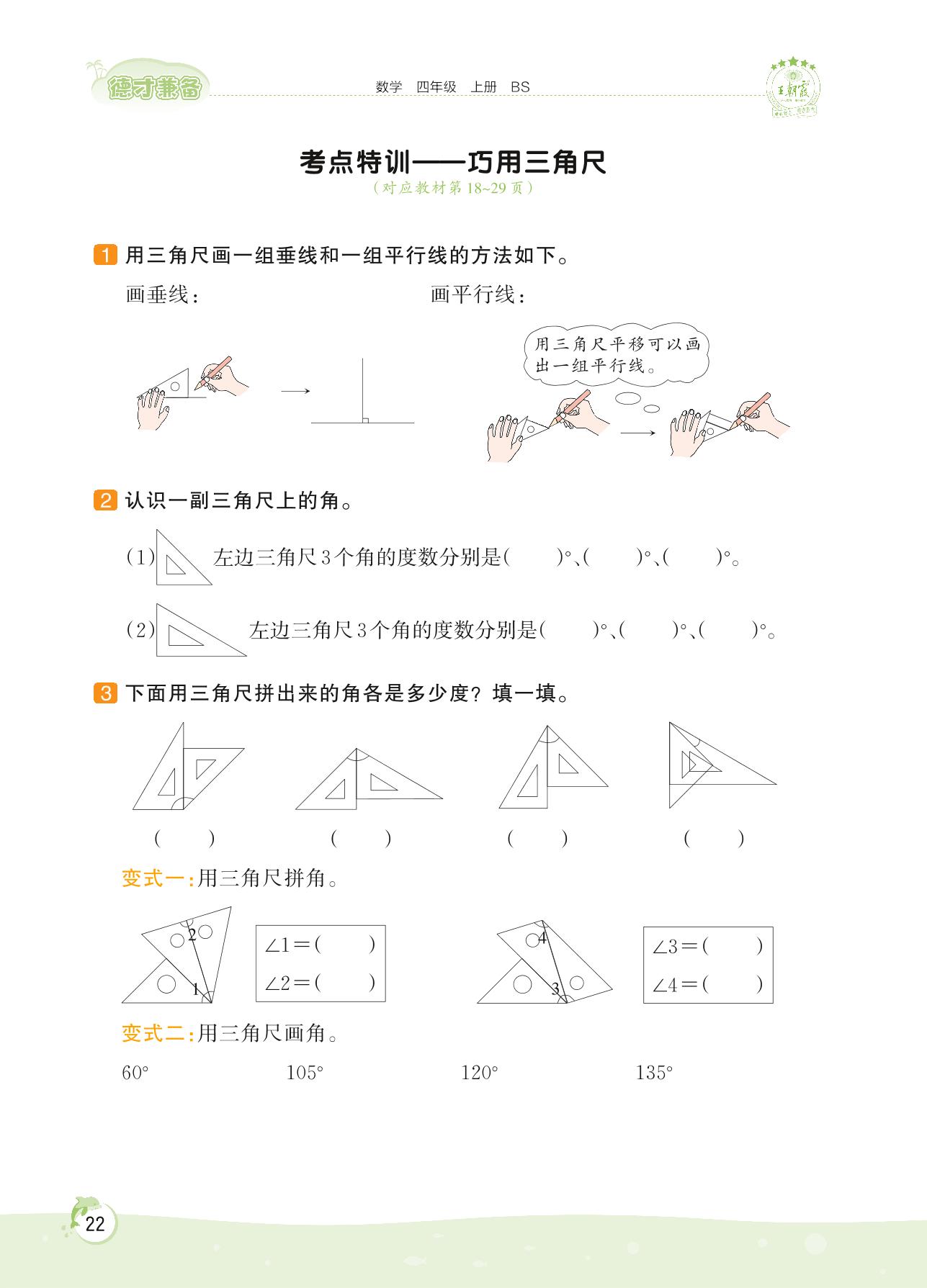2022上册四年级数学北师版 第二单元 线与角——考点特训 巧用三角尺