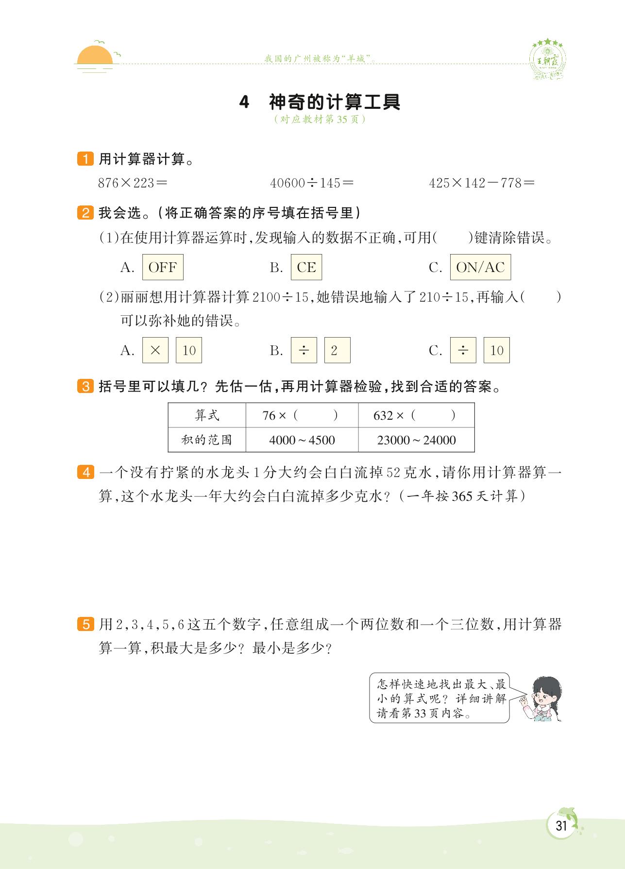 2022上册四年级数学北师版 第三单元 乘法——4 神奇的计算工具