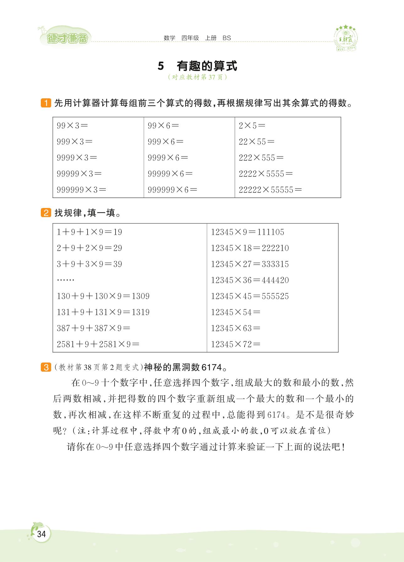 2022上册四年级数学北师版 第三单元 乘法——5 有趣的算式