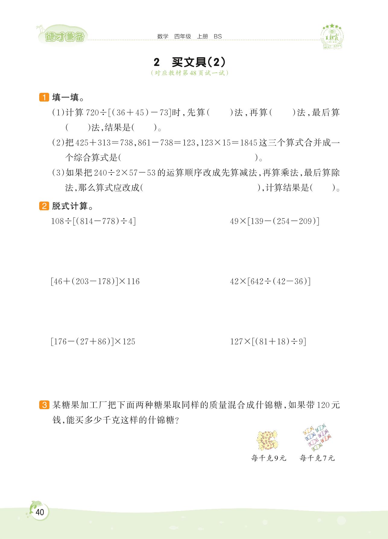 2022上册四年级数学北师版 第四单元 运算律——2 买文具(2)