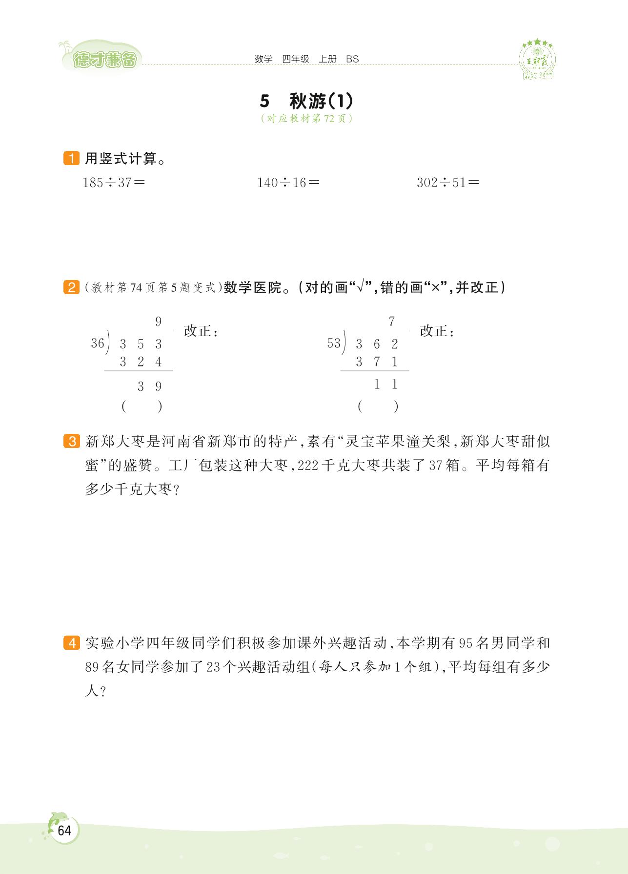 2022上册四年级数学北师版 第六单元 除法——5 秋游(1)