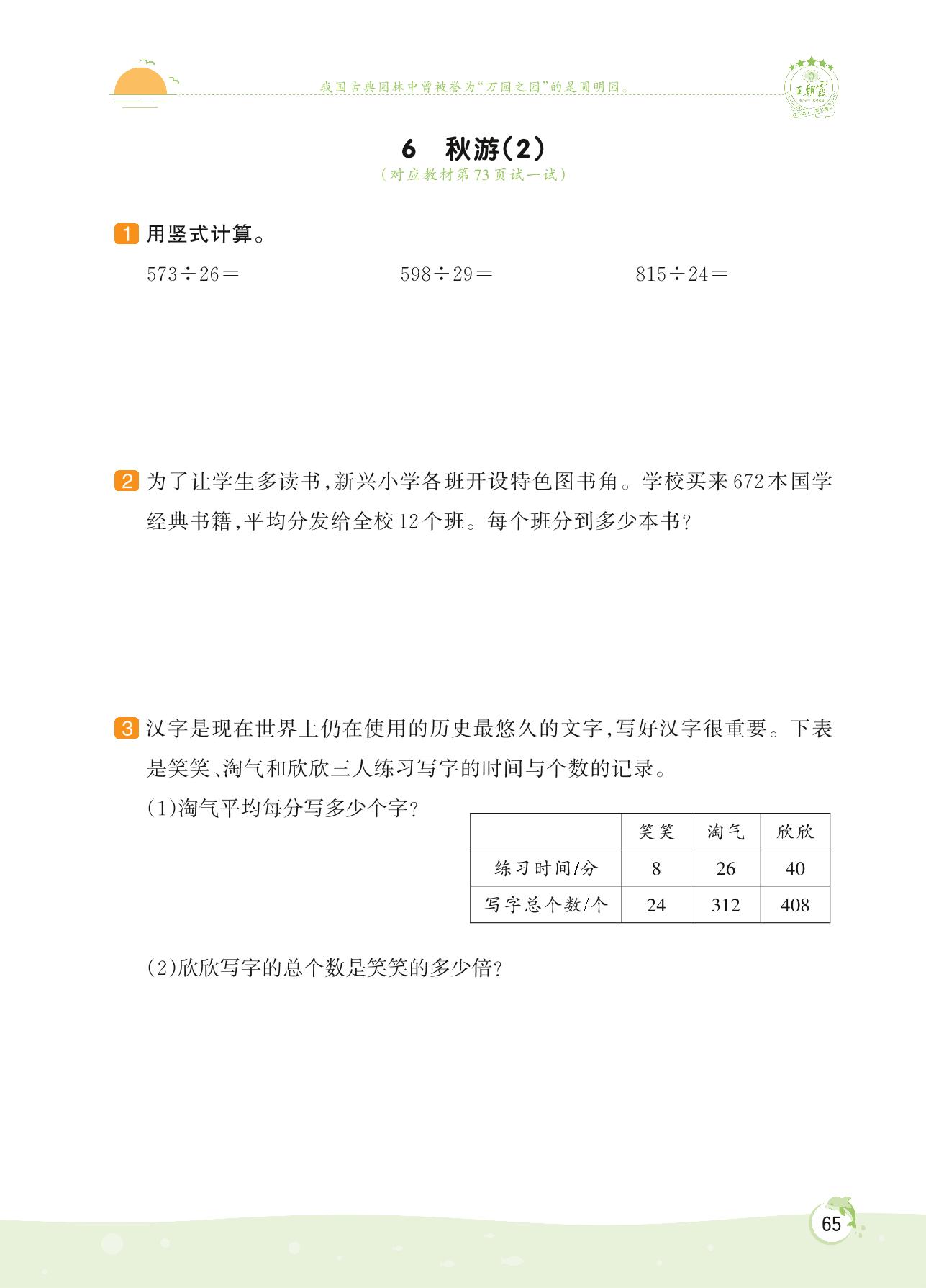 2022上册四年级数学北师版 第六单元 除法——6 秋游(2)
