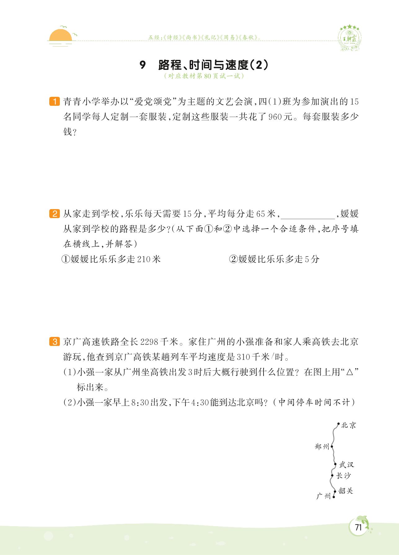 2022上册四年级数学北师版 第六单元 除法——9 路程、时间与速度(2)
