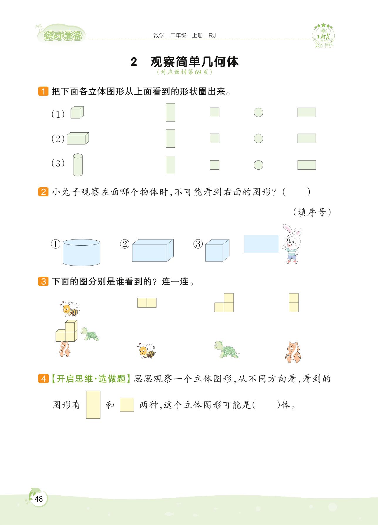 2022上册二年级数学人教版 第五单元 观察物体(一)——2 观察简单几何体