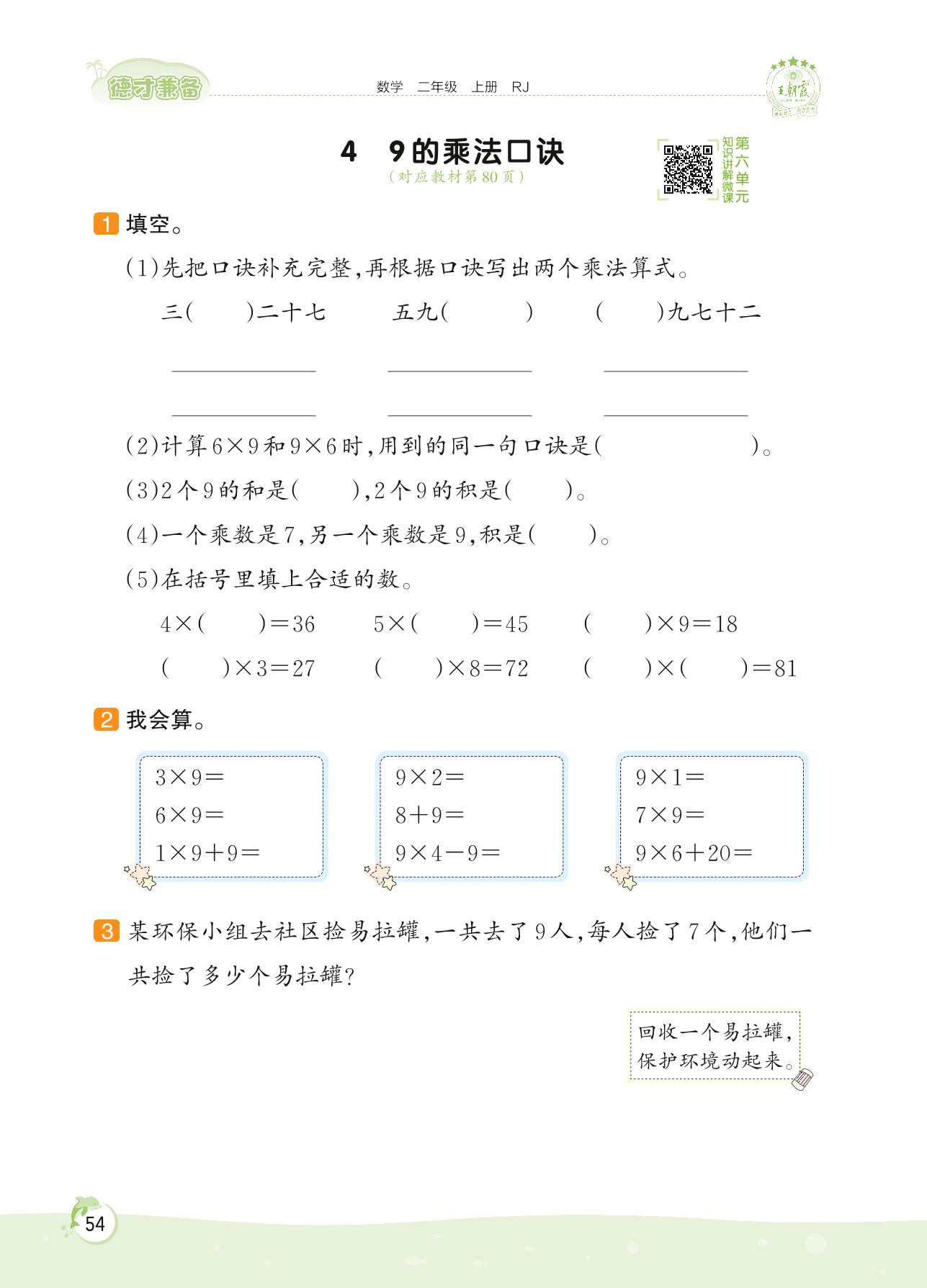 2022上册二年级数学人教版 第六单元 表内乘法(二)——4 9的乘法口诀
