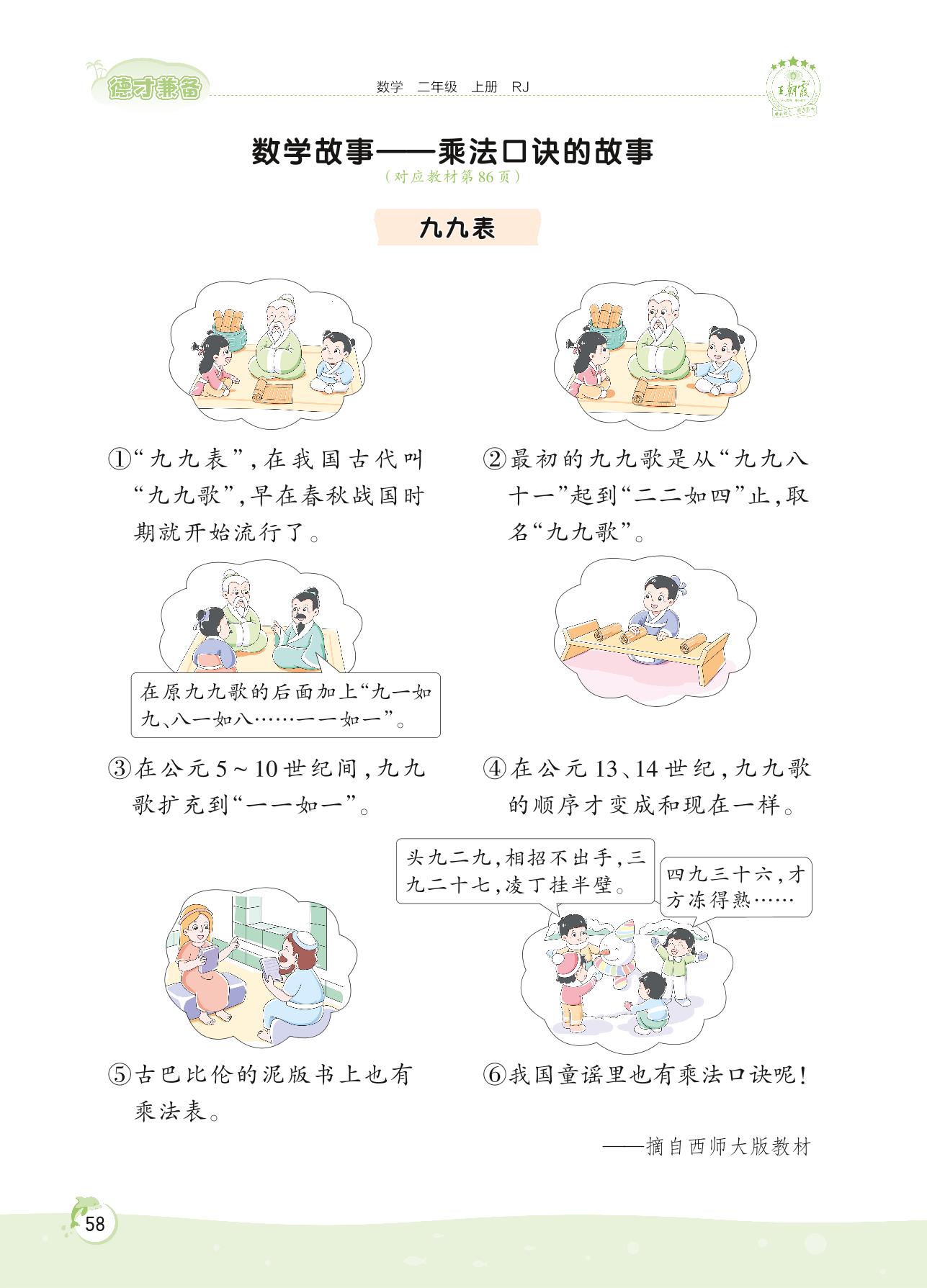 2022上册二年级数学人教版 第六单元 表内乘法(二)——数学故事 乘法口诀的故事