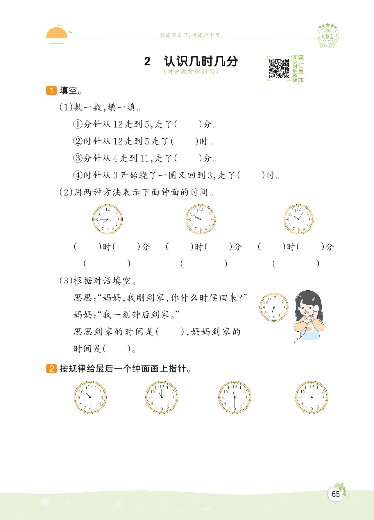 2022上册二年级数学人教版 第七单元 认识时间——2 认识几时几分