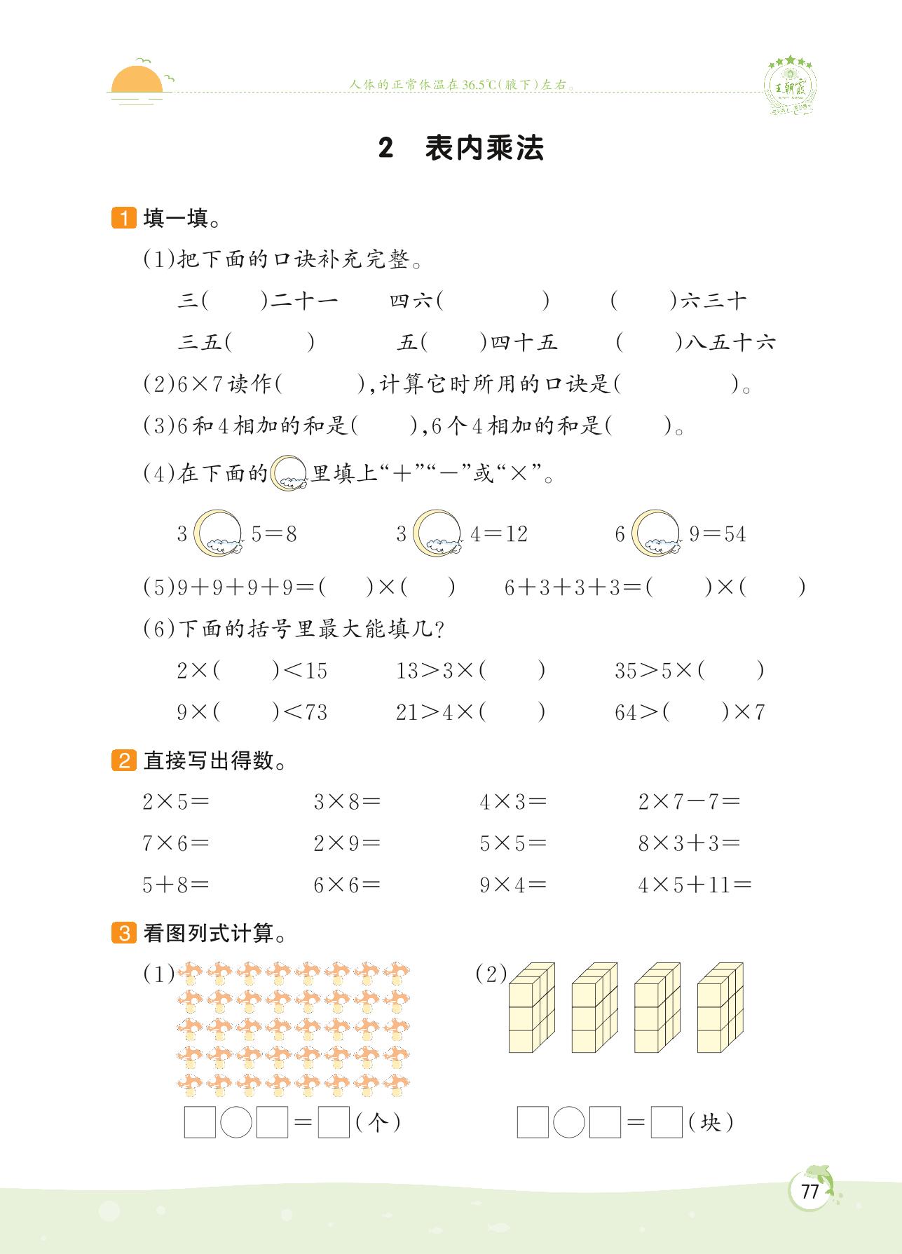 2022上册二年级数学人教版 第九单元 总复习——2 表内乘法