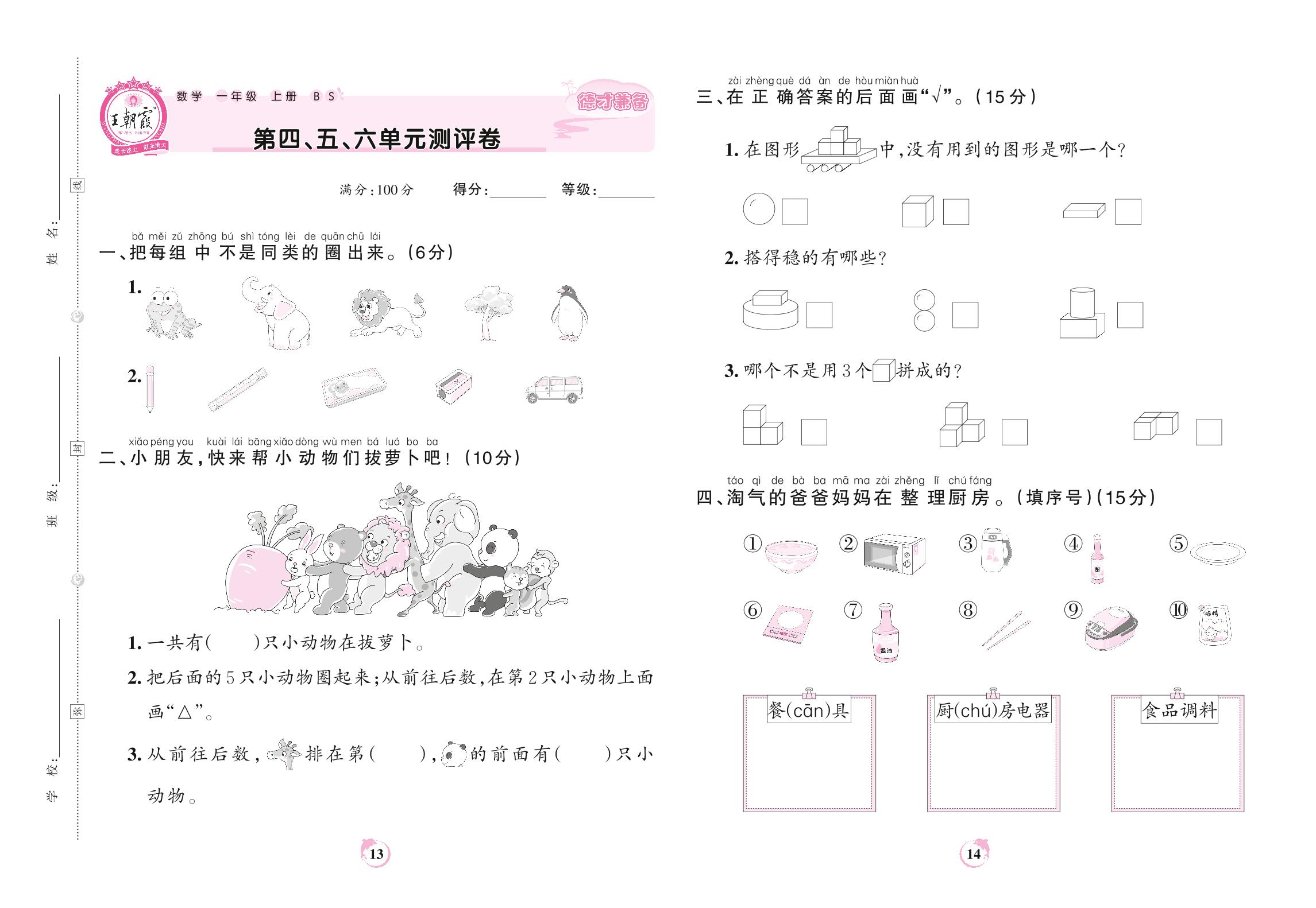 2022上册一年级数学北师版 第四、五、六单元测评卷