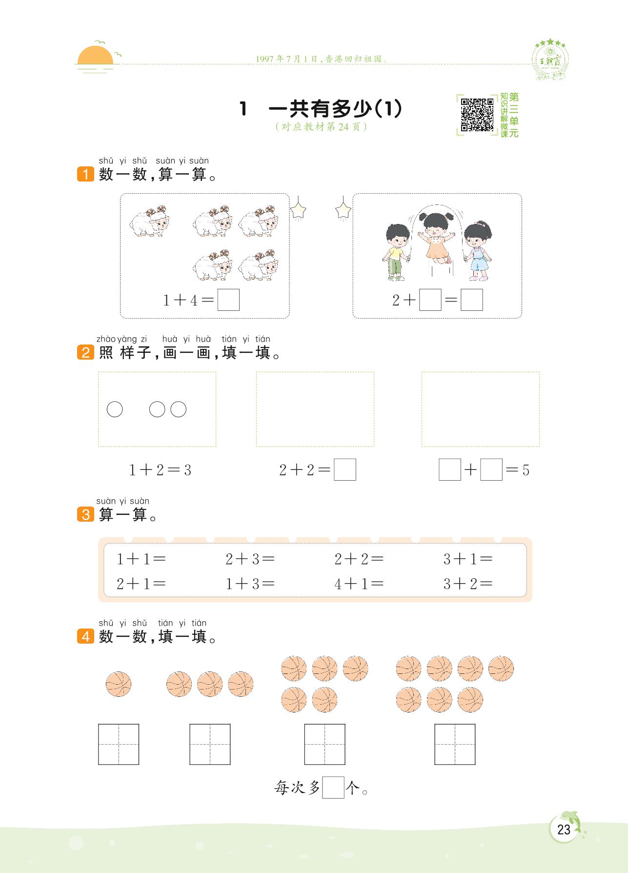2022上册一年级数学北师版 第三单元 加与减(一)——1 一共有多少(1)