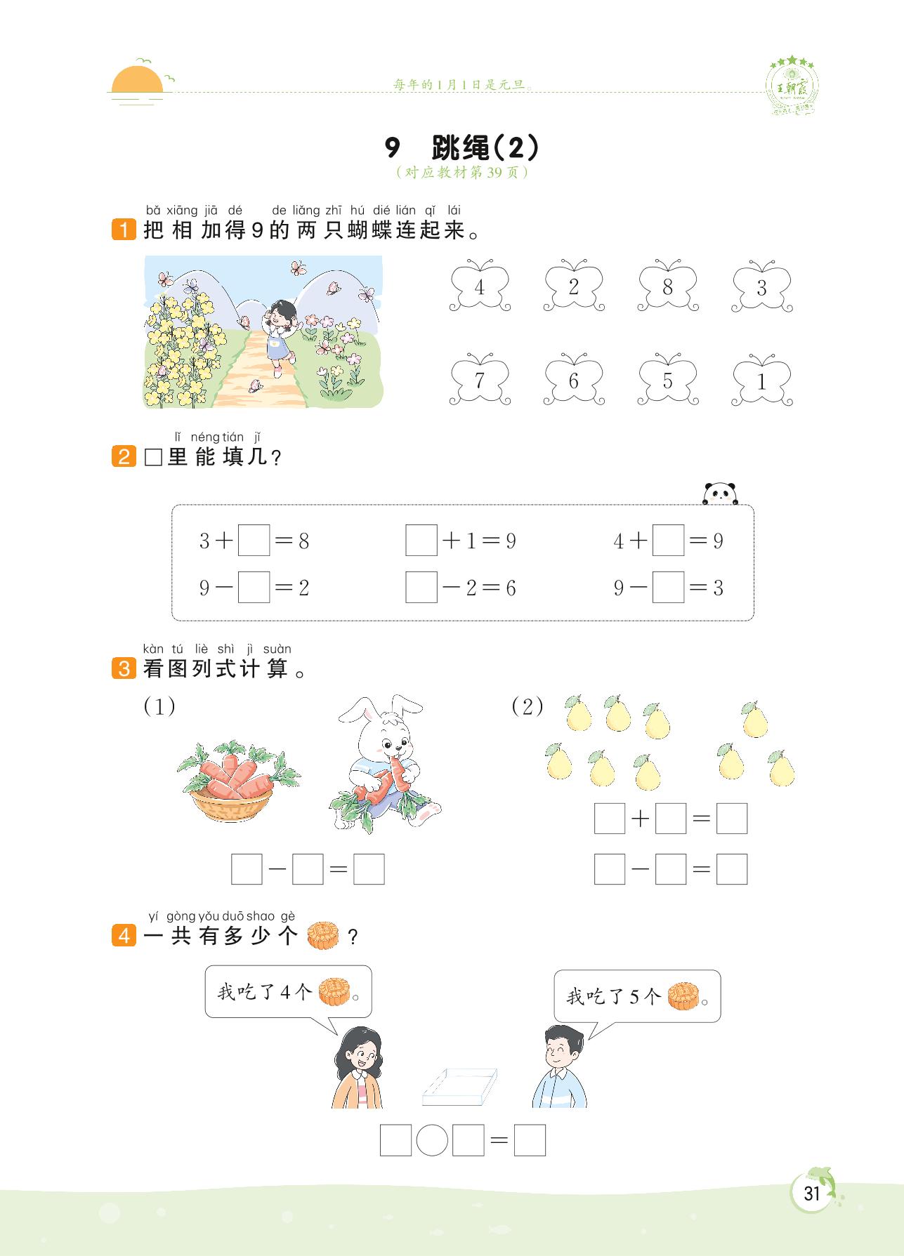 2022上册一年级数学北师版 第三单元 加与减(一)——9 跳绳(2)
