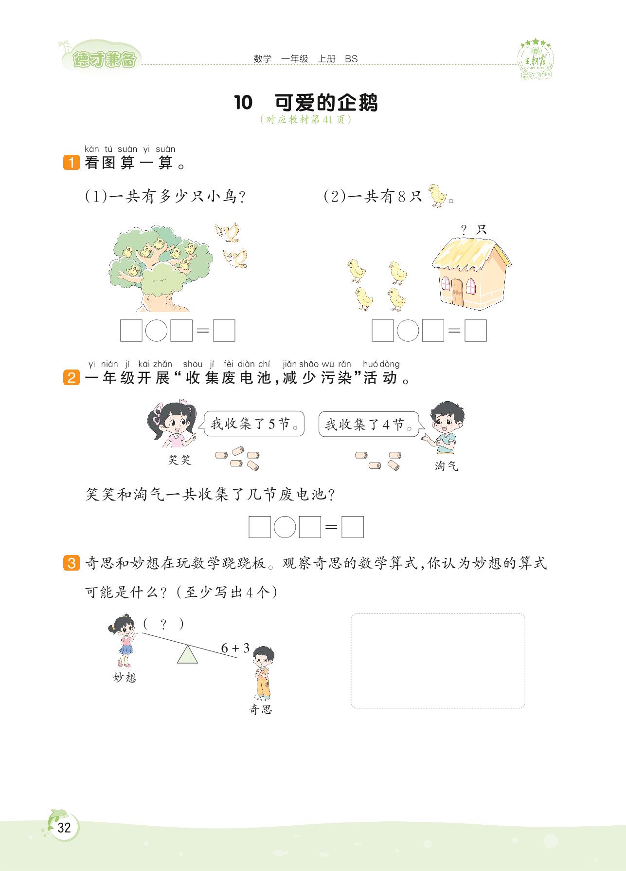 2022上册一年级数学北师版 第三单元 加与减(一)——10 可爱的企鹅