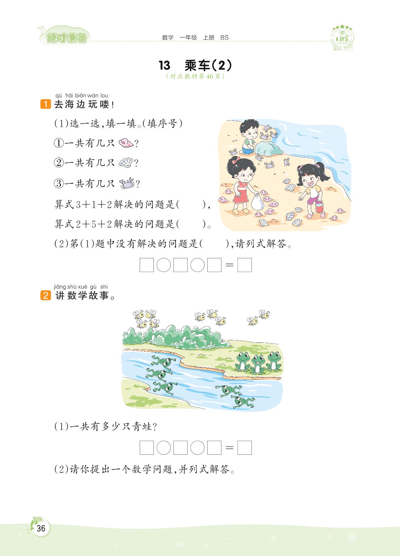2022上册一年级数学北师版 第三单元 加与减(一)——13 乘车(2)