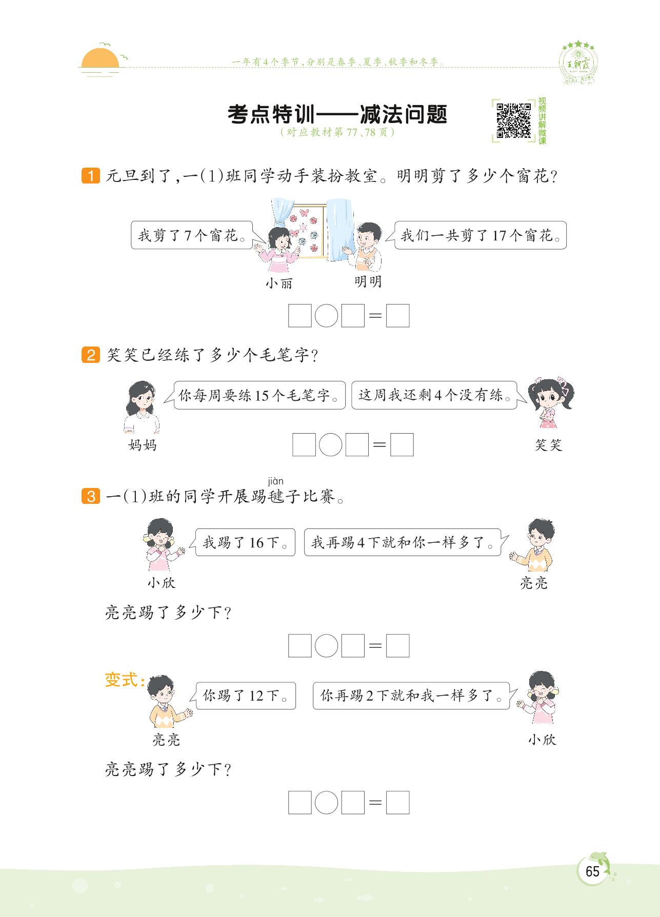 2022上册一年级数学北师版 第七单元 加与减(二)——考点特训 减法问题