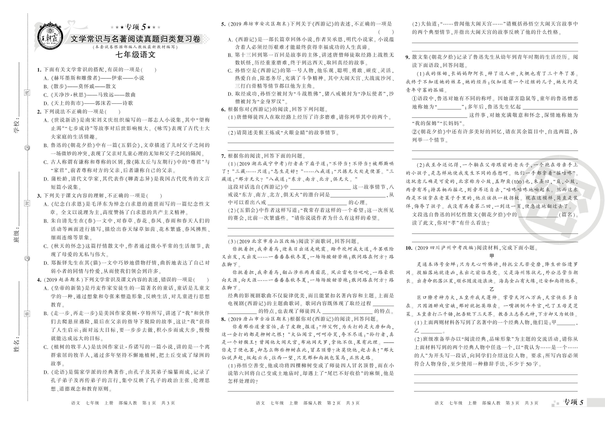 王朝霞期末专项卷——文学常识与名著阅读、口语交际与综合性学习真题归类复习七年级上册语文(人教版)_R21080240418【0】
