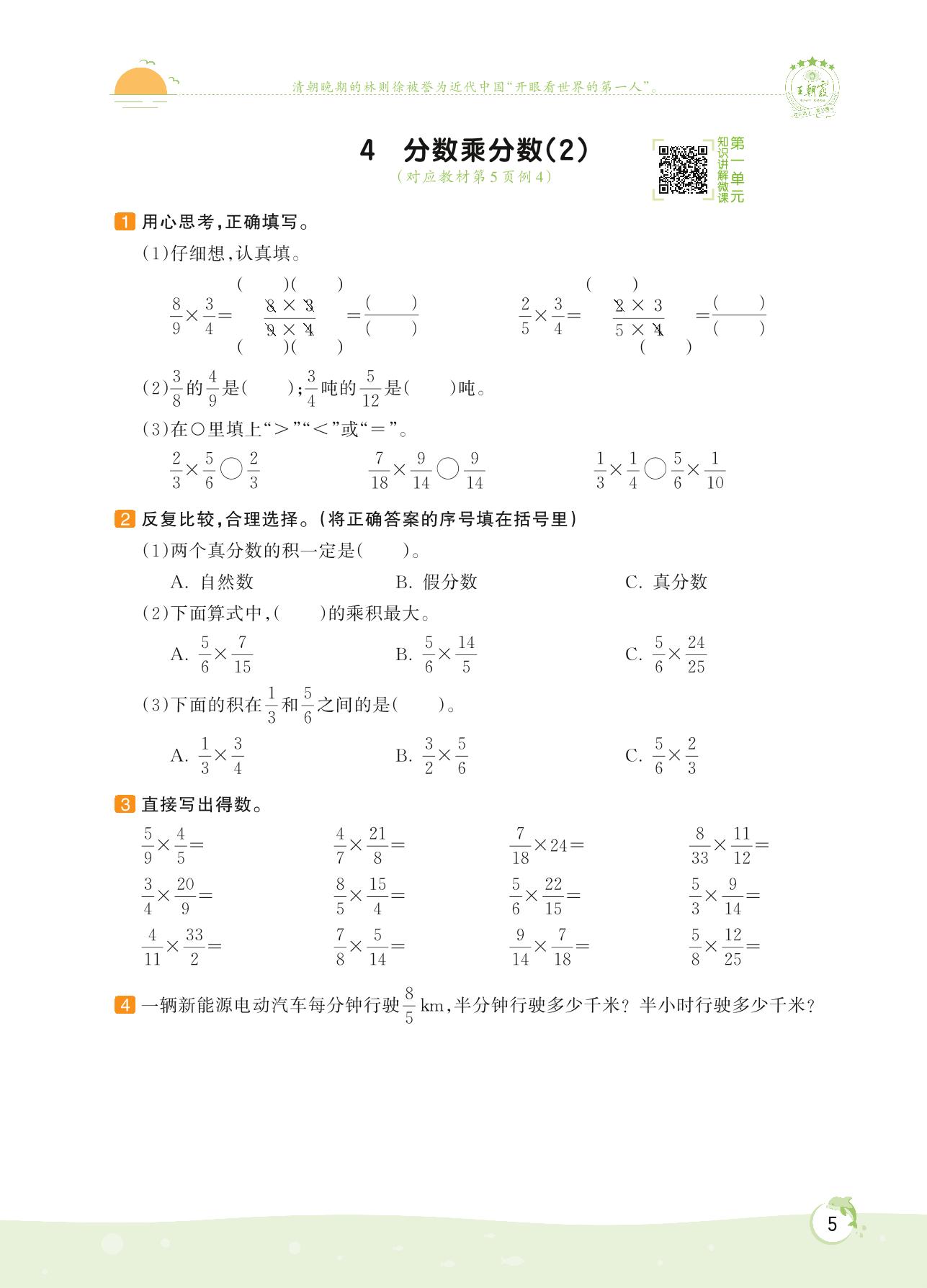 2022上册六年级数学人教版 第一单元 分数乘法——4 分数乘分数(2)
