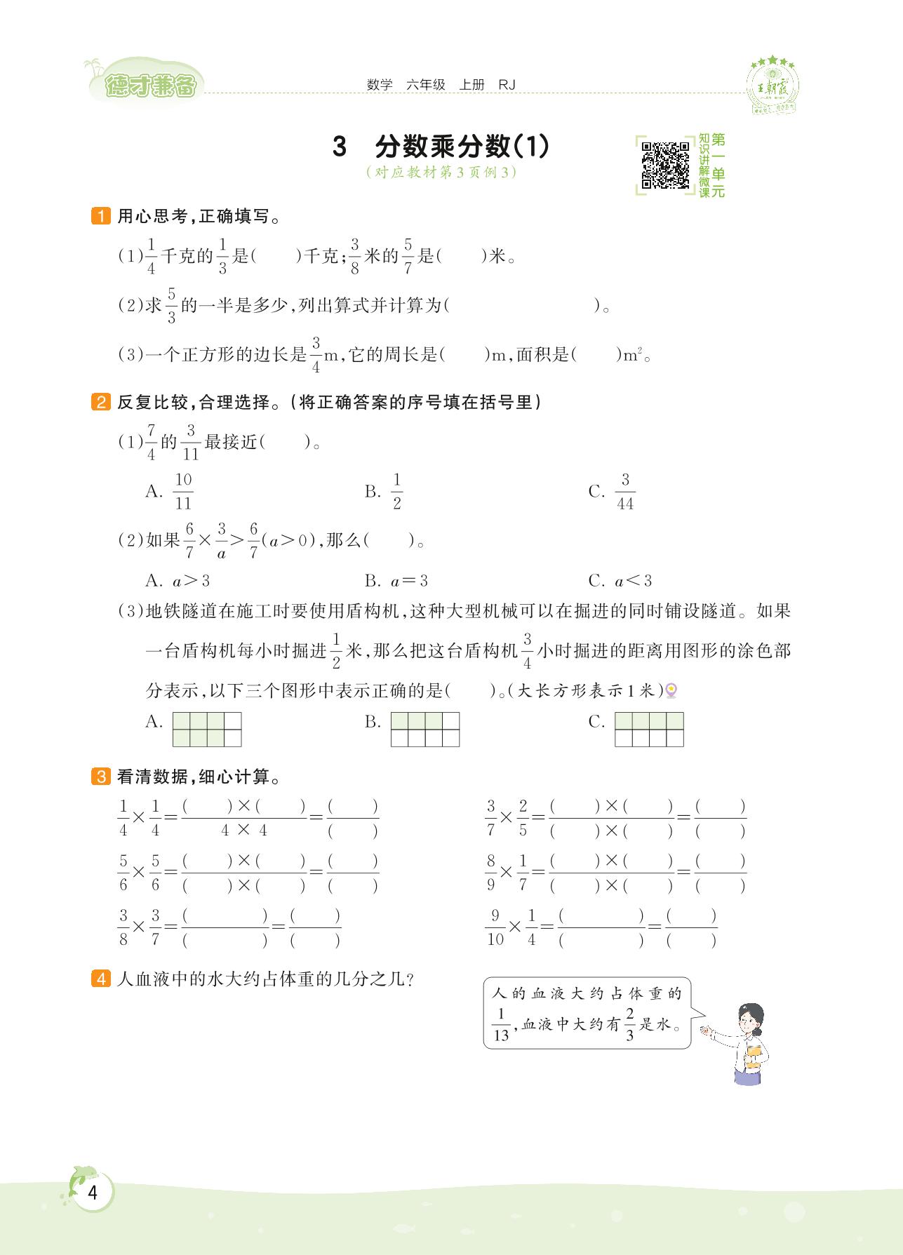 2022上册六年级数学人教版 第一单元 分数乘法——3 分数乘分数(1)